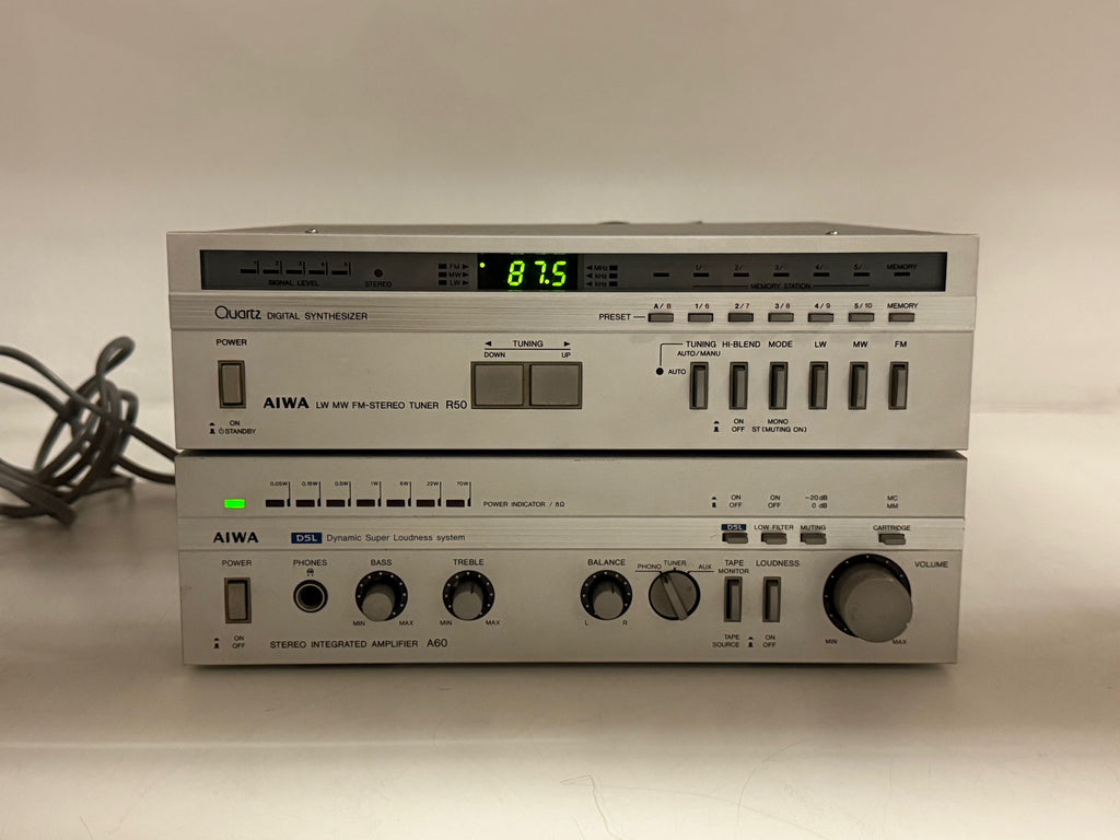 Te koop: Aiwa R50 FM-stereo tuner / A60 stereo geïntegreerde versterker set