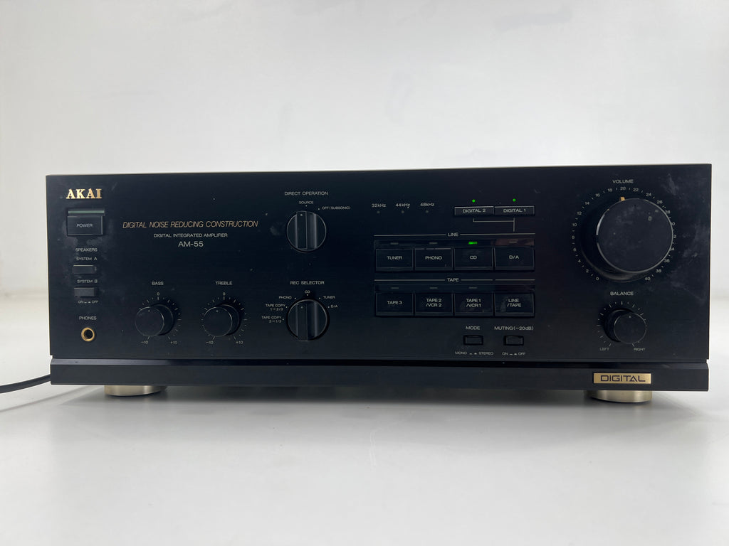 De vintage Akai AM-55 digitale geïntegreerde versterker (1990-1991) onderscheidt zich door zijn robuuste prestaties en geavanceerde functies. Met een krachtig vermogen van 80 watt per kanaal bij 8Ω (stereo) garandeert deze versterker een hoogwaardige audiobeleving. Met een frequentiebereik van 30 Hz tot 20 kHz en een indrukwekkend lage totale harmonische vervorming van 0,005% produceert de AM-55 een heldere en nauwkeurige geluidsweergave.