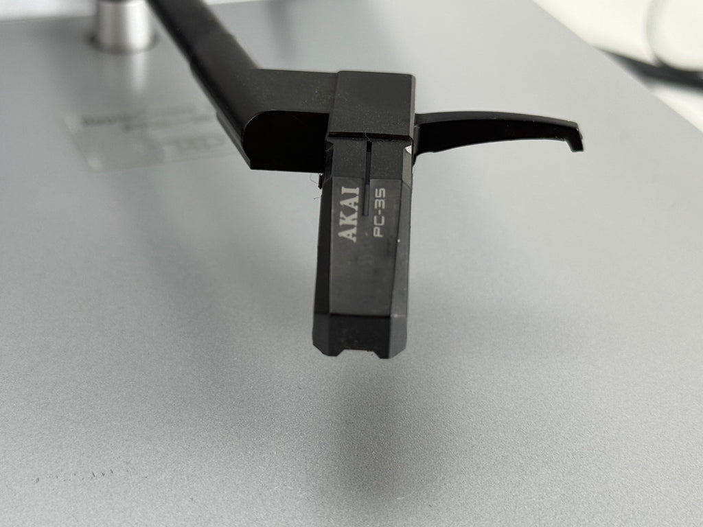 Conditie: Mooie draaitafel van Akai. We hebben de snaar vervangen, hij werkt en klinkt geweldig. Wordt geleverd met de Akai PC-35 cartridge. De platenspeler ziet er cosmetisch goed uit, met lichte gebruikssporen. Aan de rechterkant zitten wat vlekken die we niet hebben kunnen verwijderen.