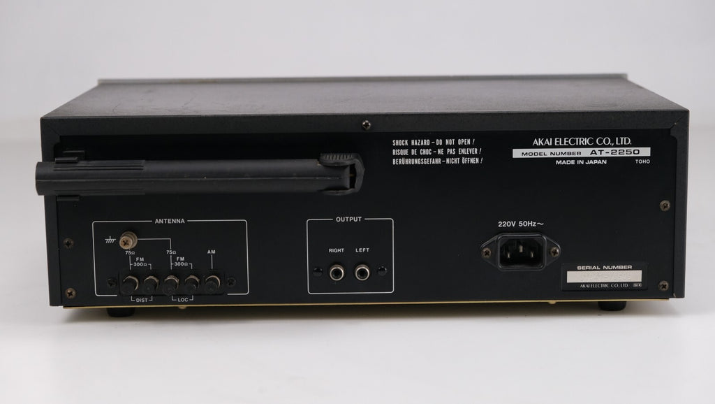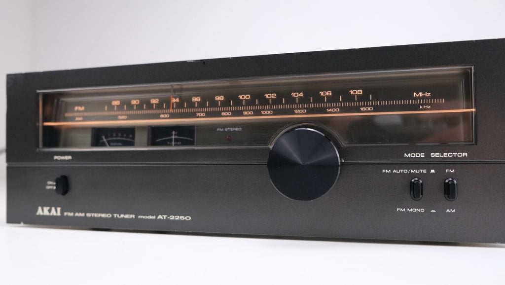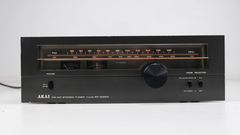De Akai AT-2250, een vintage FM/AM stereo tuner geproduceerd tussen 1978 en 1980, demonstreert opmerkelijke technische bekwaamheid en prestaties. Met een analoge afstemschaal die de FM-band (87,5 tot 108 MHz) en de middengolfband (520 tot 1605 kHz) bestrijkt, biedt hij veelzijdige frequentie-afstemmogelijkheden. De tuner heeft een lage gevoeligheid van 1,9 µV voor FM en 100 µV voor middengolf, wat optimale signaalontvangst garandeert. Opvallende kenmerken zijn een hoge signaal-ruisverhouding van 70 dB (FM) en 55 dB (middengolf), samen met een minimale vervorming van 0,2% (FM), wat bijdraagt aan de uitstekende geluidskwaliteit. De selectiviteit van de Akai AT-2250 van 65 dB (FM) en 30 dB (middengolf) verbetert het vermogen om gewenste signalen effectief te isoleren en op te vangen. Met zijn robuuste constructie en complete specificaties is deze tuner een bewijs van Akai's streven naar kwaliteit in de late jaren '70.
