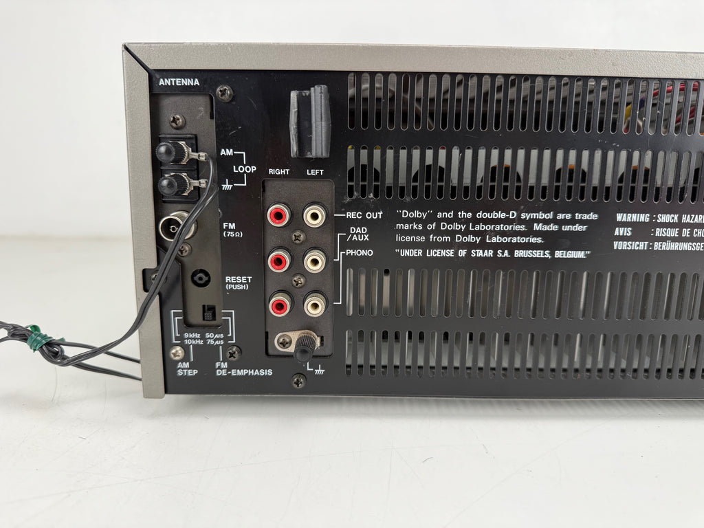 Conditie: In goede staat, klinkt erg goed. Werkt perfect, de afstandsbediening heeft AA-batterijen nodig. Het apparaat heeft lichte cosmetische gebruikssporen. Getest en werkend. Een zeldzaam pareltje, durven we wel te zeggen!
