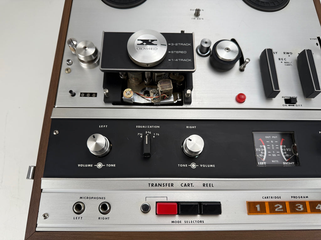 Conditie: In goede staat, werkt, klinkt en ziet er fantastisch uit. We hebben de koppen en potentiometers schoongemaakt. De lampjes van de VU-meters zijn vervangen. Er zijn lichte cosmetische gebruikssporen. De banden zijn niet inbegrepen. Ook getest met de ingebouwde 8-track recorder. Alles werkte naar behoren.