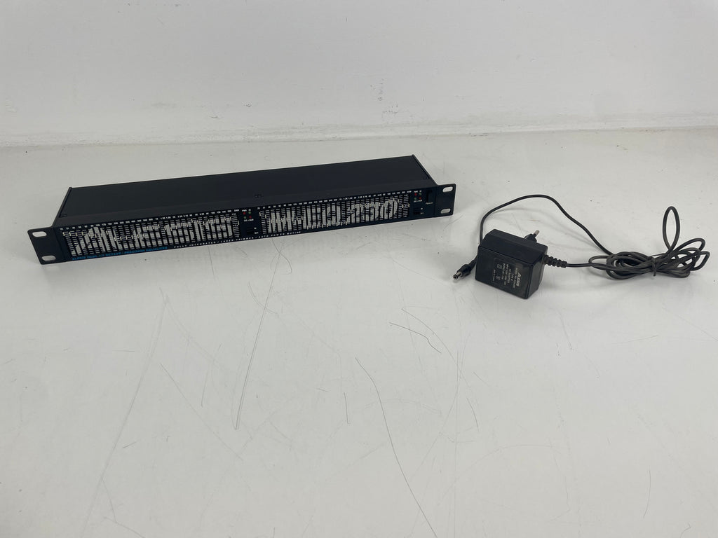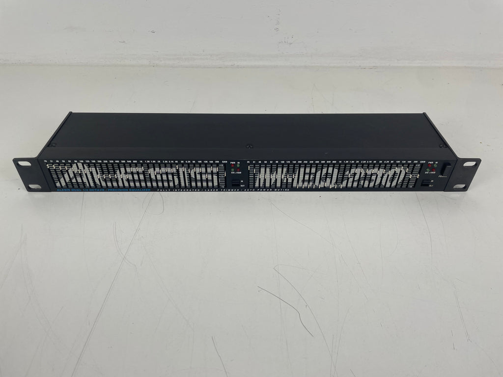 Een Alesis M-EQ230, een professionele grafische equalizer met twee 30 banden, ontworpen voor studio-, live- en installatiegebruik. De M-EQ230 biedt nauwkeurige frequentiecontrole en is ideaal voor systeemafstemming, ruimtecorrectie, monitor-EQ of algemene signaalvorming.