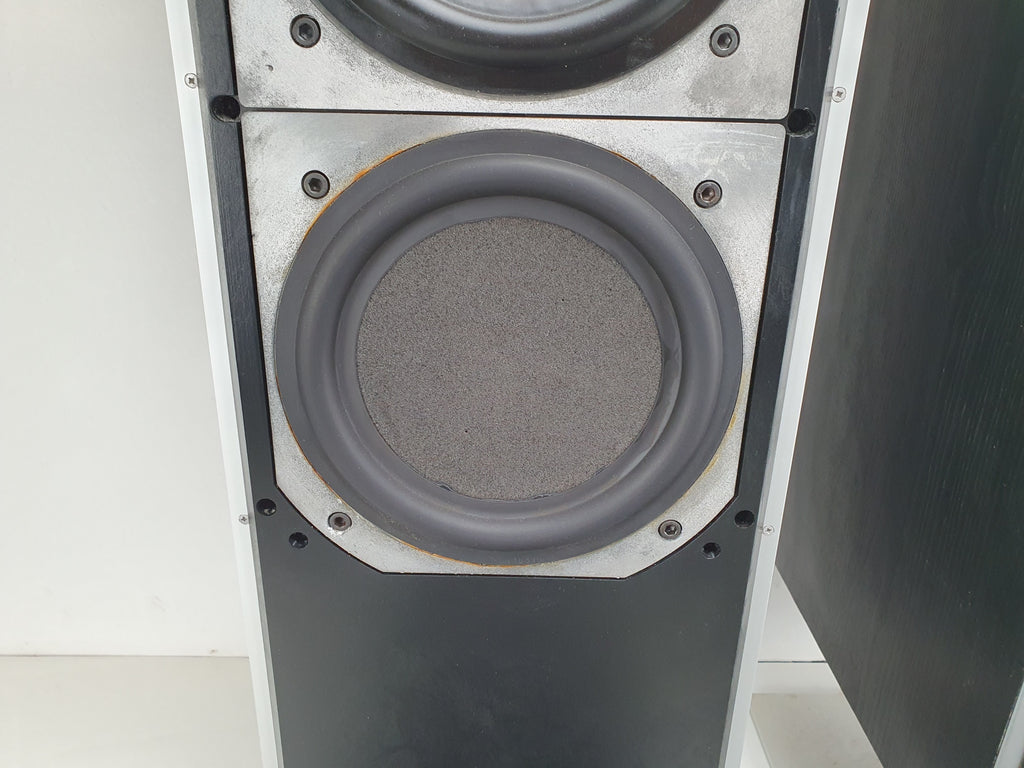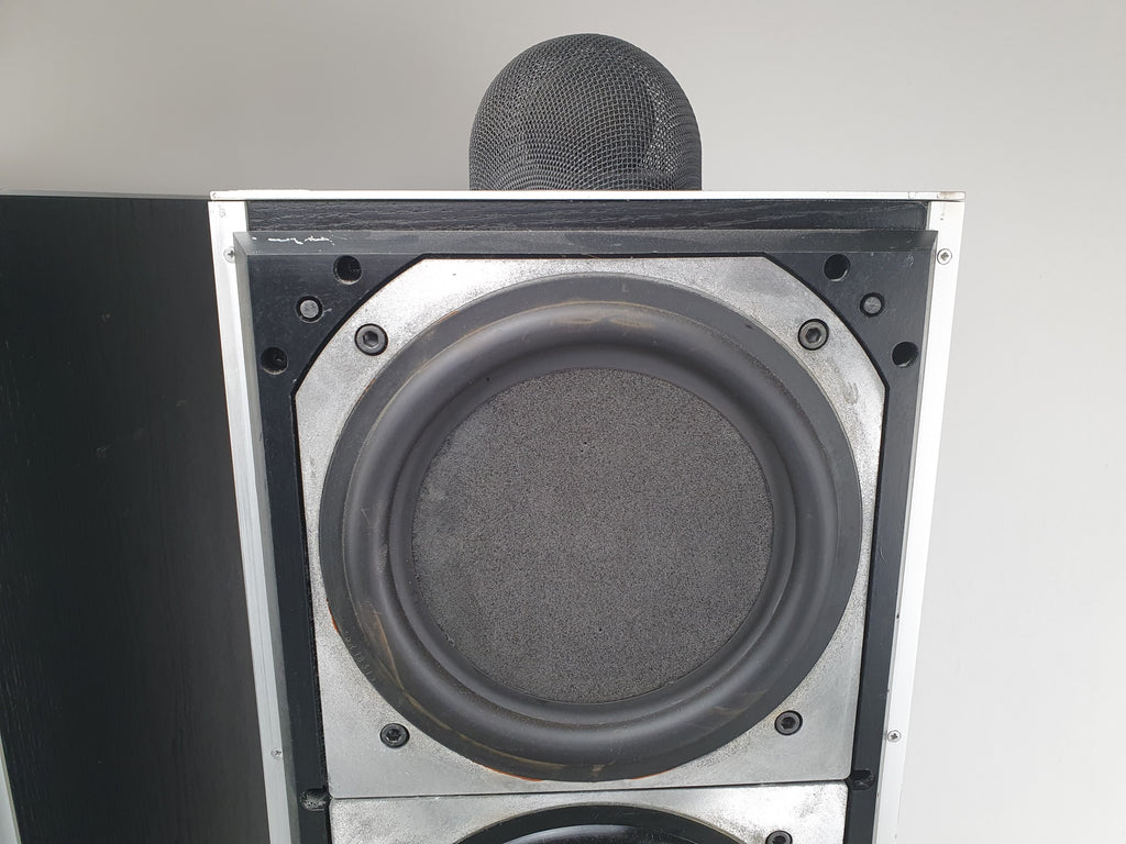 Conditie: Gebruikt. Volledig werkend. Maar... Eén tweeter lijkt een klein beetje hoge frequenties te missen en heeft waarschijnlijk nieuwe ferrofluid nodig. Ook ontbreken bij één van de luidsprekerroosters alle plastic bevestigingspinnen. En de behuizingen vertonen duidelijke gebruikssporen. Al met al klinken deze luidsprekers erg goed, ze werken volledig, maar zijn wel gebruikt.