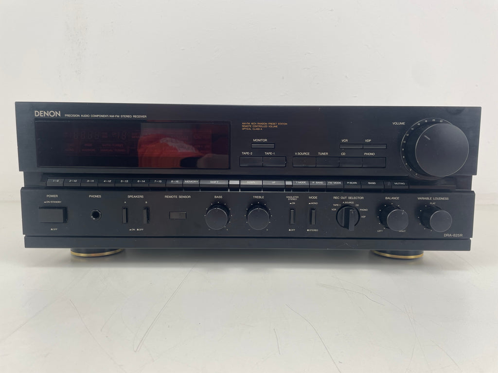 Te koop: een Denon DRA-825R stereo receiver, een krachtige en degelijk gebouwde hifi-receiver die bekend staat om zijn warme, gedetailleerde geluid en solide constructie. Dit model combineert een hoogwaardige stereo-versterker met een geïntegreerde AM/FM-tuner, waardoor het een geweldige blikvanger is voor elke klassieke hifi-opstelling.