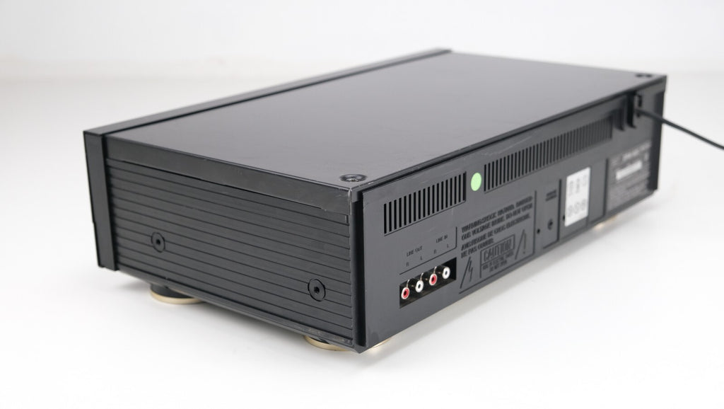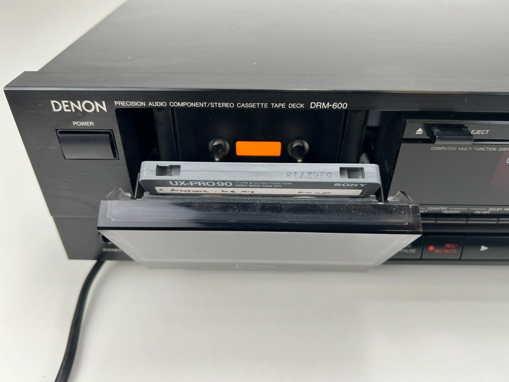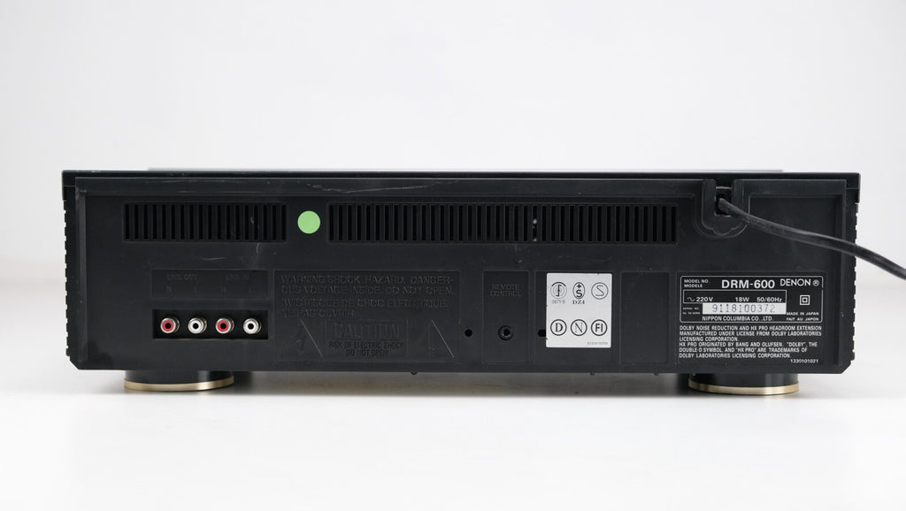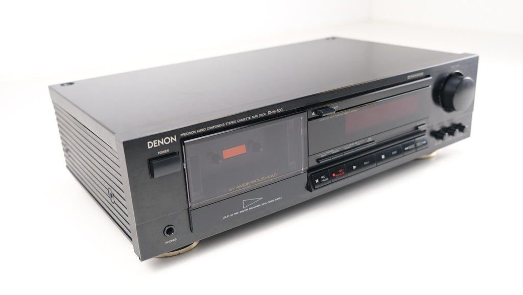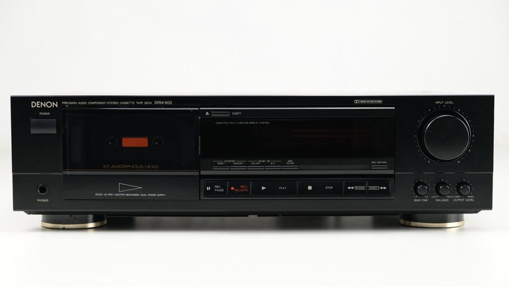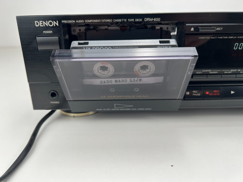 De Denon DRM-600, een stereo cassettedeck geproduceerd tussen 1990 en 1991, heeft een compact ontwerp met twee koppen en een 4-sporen, 2-kanaals stereosysteem, wat zorgt voor nauwkeurige opname- en afspeelmogelijkheden. Met Dolby B- en C-ruisonderdrukking en Headroom Extension (HX Pro) levert het een uitzonderlijke geluidskwaliteit en dynamisch bereik. Het gebruik van één spoel en één capstanmotor minimaliseert wow en flutter tot een indrukwekkende 0,055%, wat zorgt voor stabiel bandtransport. De DRM-600 ondersteunt verschillende bandtypen (type I, CrO2, metaal) en heeft een breed frequentiebereik tot 20 kHz (voor metaalband), waardoor hij uitblinkt in veelzijdigheid en geluidskwaliteit. Met een signaal-ruisverhouding van 74 dB (Dolby C) en een in-/uitgangsbereik geoptimaliseerd voor lijnniveausignalen.