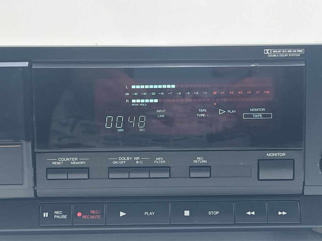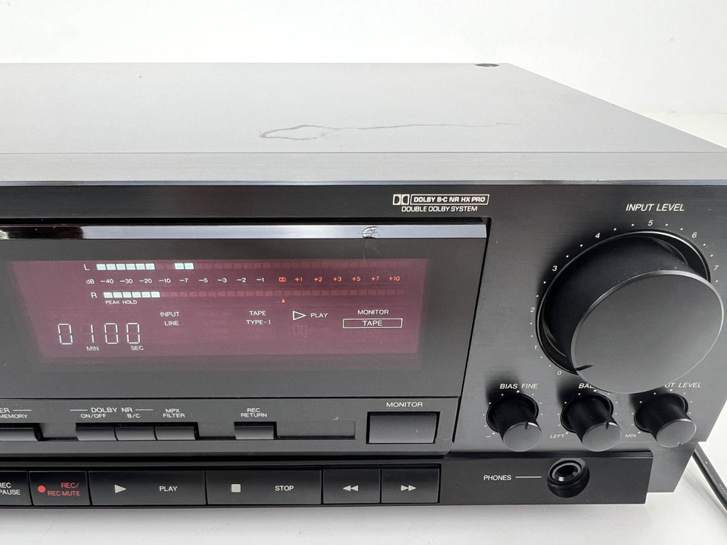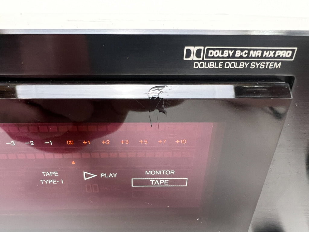 Het cassettedeck is in goede gebruikte staat. Aan de voorkant zijn minimale gebruikssporen te zien, met uitzondering van een