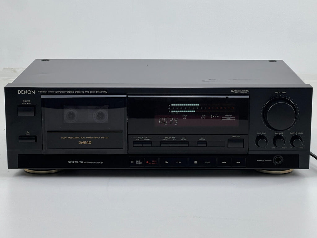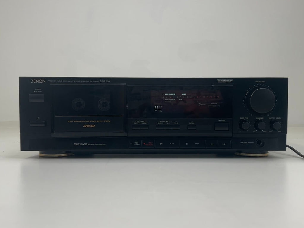 De Denon DRM-700 stereo cassettedeck, met zijn configuratie met drie koppen en off-tape monitoring, blinkt uit in het leveren van hoogwaardige opnames en nauwkeurige weergave. Uitgerust met een digitale lineaire tapeteller en automatische tapetypeselectie, biedt het gebruiksgemak en veelzijdigheid in gebruik, met ondersteuning voor normale, chroom- en metalen tapes. De Dolby C-type ruisonderdrukking en het Dolby HX PRO-systeem zorgen voor minimale vervorming en een natuurgetrouwe weergave van het geluid, waardoor het ideaal is voor veeleisende audiofielen. De schakelbare MPX-filter verbetert de prestaties verder door ongewenste signalen te filteren, waardoor een correcte Dolby-verwerking van FM-stereoprogramma's gegarandeerd is. Bovendien verbetert de compatibiliteit met afstandsbediening en de hoofdtelefoonaansluiting de gebruikerservaring en flexibiliteit bij het afspelen van audio.