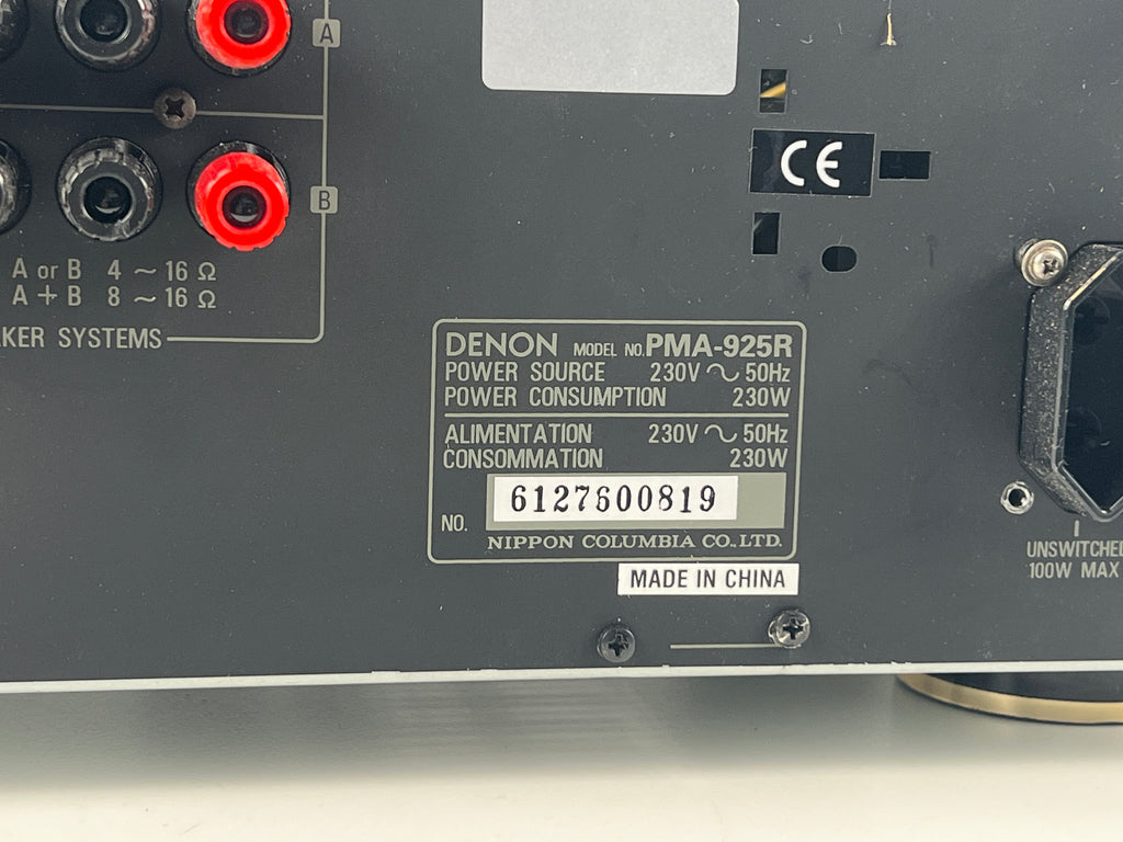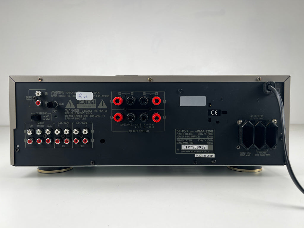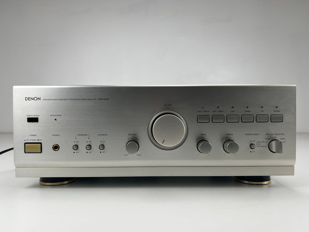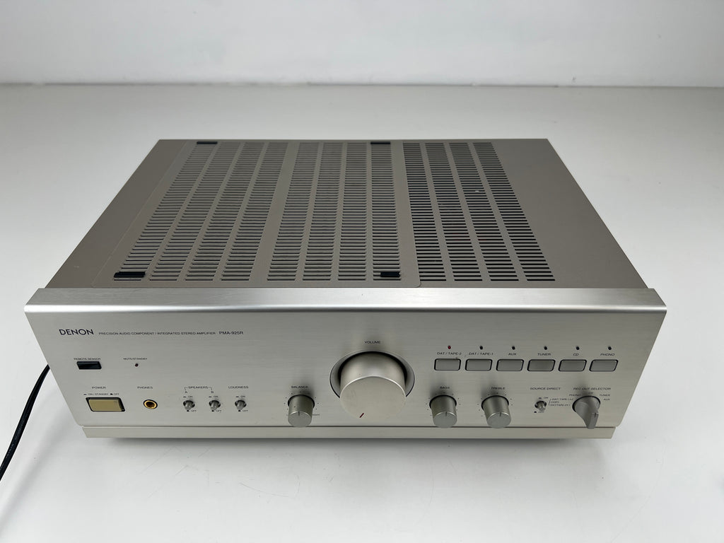 De Denon PMA-925R geïntegreerde stereo-versterker uit 1996 is een toonbeeld van hoogwaardige audioprestaties. Met een aanzienlijk vermogen van 80 watt per kanaal bij 8 Ω garandeert hij een krachtige en dynamische geluidservaring. De frequentierespons van 20 Hz tot 20 kHz en een indrukwekkend lage totale harmonische vervorming van 0,007% dragen bij aan een nauwkeurige en transparante geluidsweergave. De veelzijdige ingangsgevoeligheid, variërend van 0,2 mV voor MC, 2,5 mV voor MM tot 150 mV voor lijnniveau-ingangen, toont de aanpasbaarheid aan diverse audio-ingangen. De signaal-ruisverhouding van de versterker, met een waarde van 76 dB voor MC, 94 dB voor MM en 107 dB voor lijningangen, onderstreept zijn streven naar een zuiver audiosignaal. Met afmetingen van 434 x 162 x 346 mm en een gewicht van 11 kg combineert de PMA-925R krachtige prestaties met een slank en compact ontwerp.