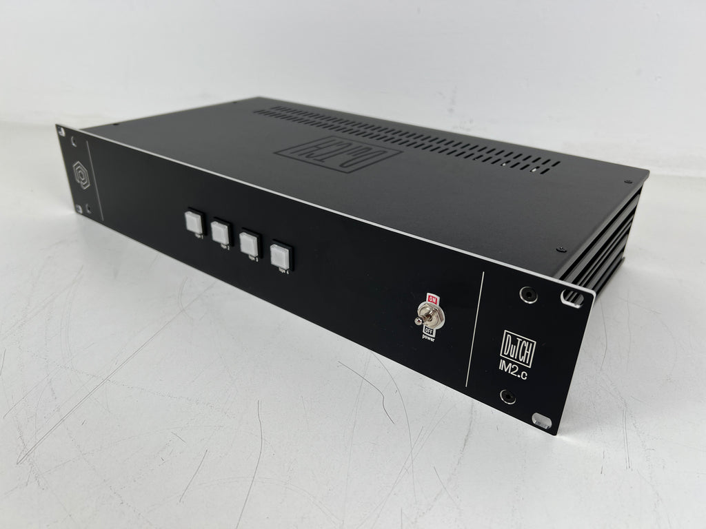 Te koop: een op maat gemaakte Nederlandse IM2.c Selector, een gespecialiseerde audioselector ontworpen voor het routeren van tapes of het selecteren van audiobronnen in professionele of studioomgevingen. Dit apparaat heeft een eenvoudige en functionele lay-out van het voorpaneel, waardoor het ideaal is voor een schone en betrouwbare signaalschakeling.