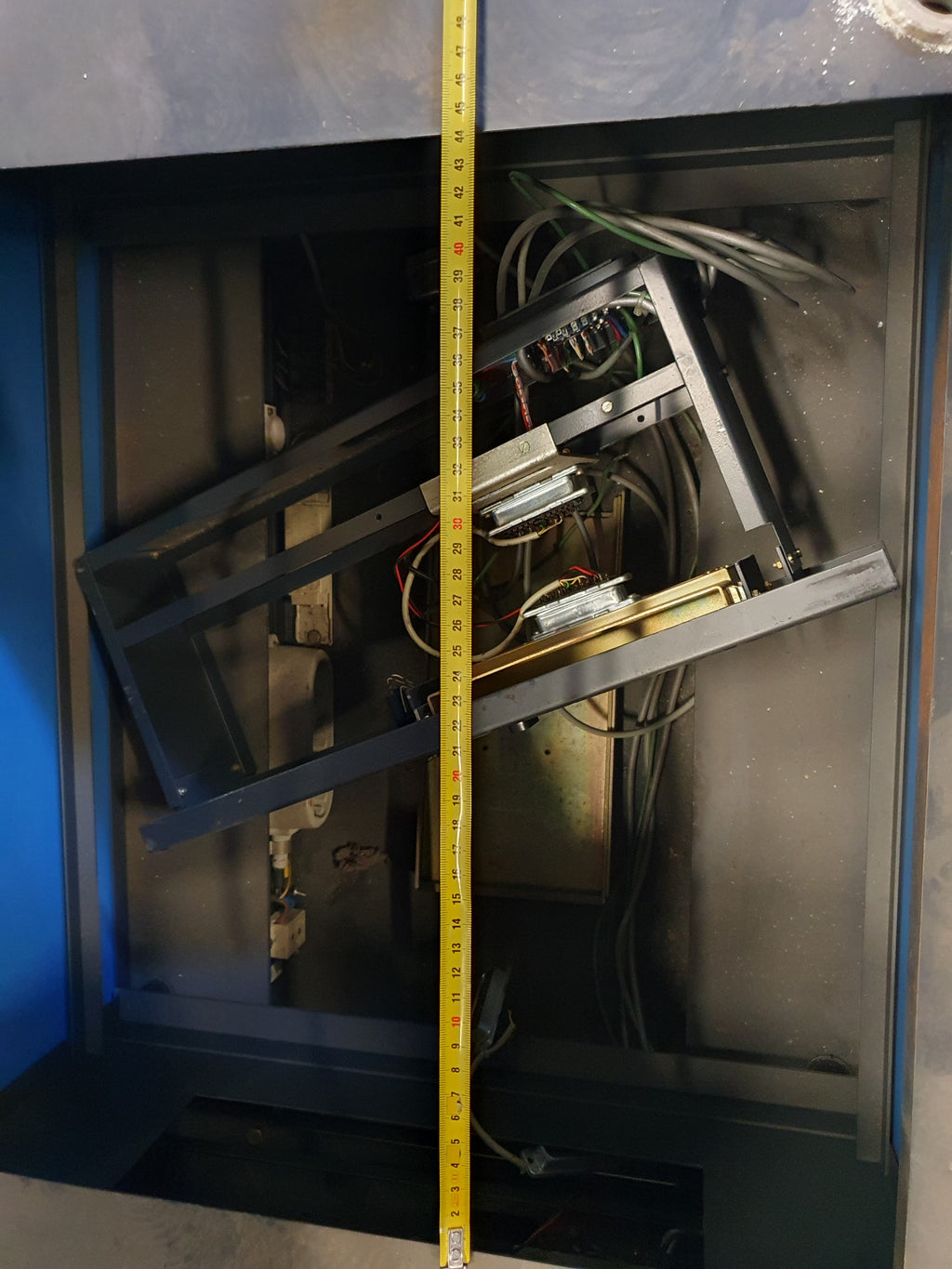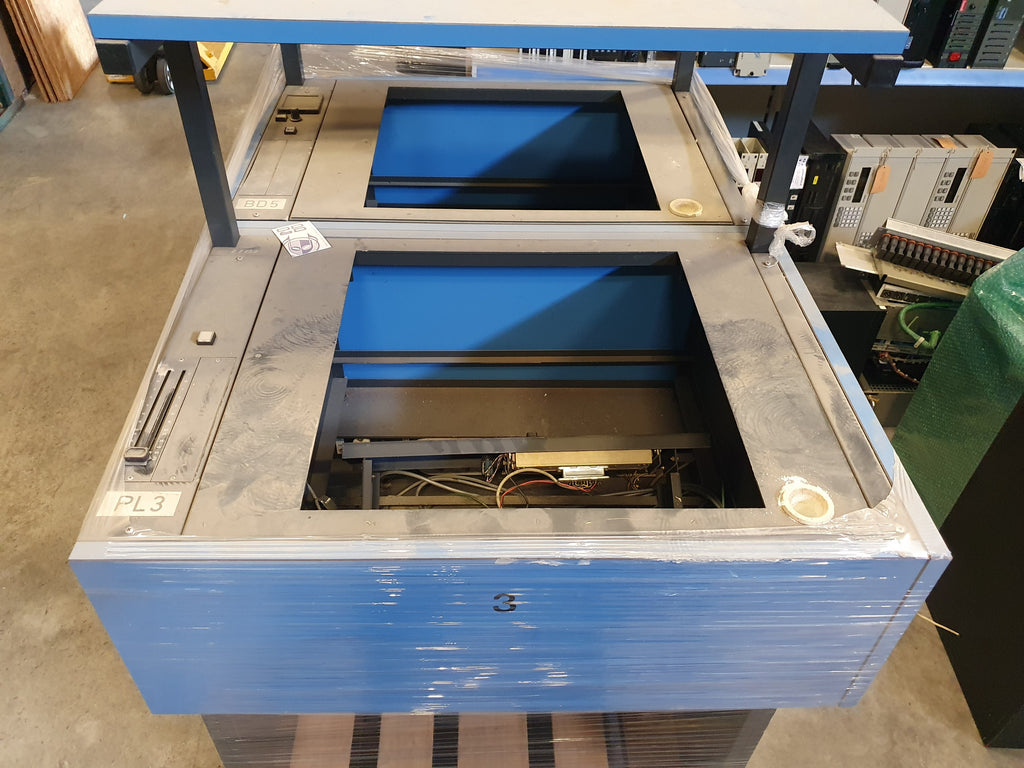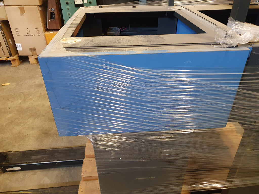 Mooi in deze blauwe kleur, en lijkt helemaal origineel. De foto's zijn gemaakt met twee exemplaren op één pallet, maar ze worden per stuk verkocht. Deze trolley heeft een binnenframe waardoor je er zowel een M5 als een M15 in kunt monteren (zonder frame).