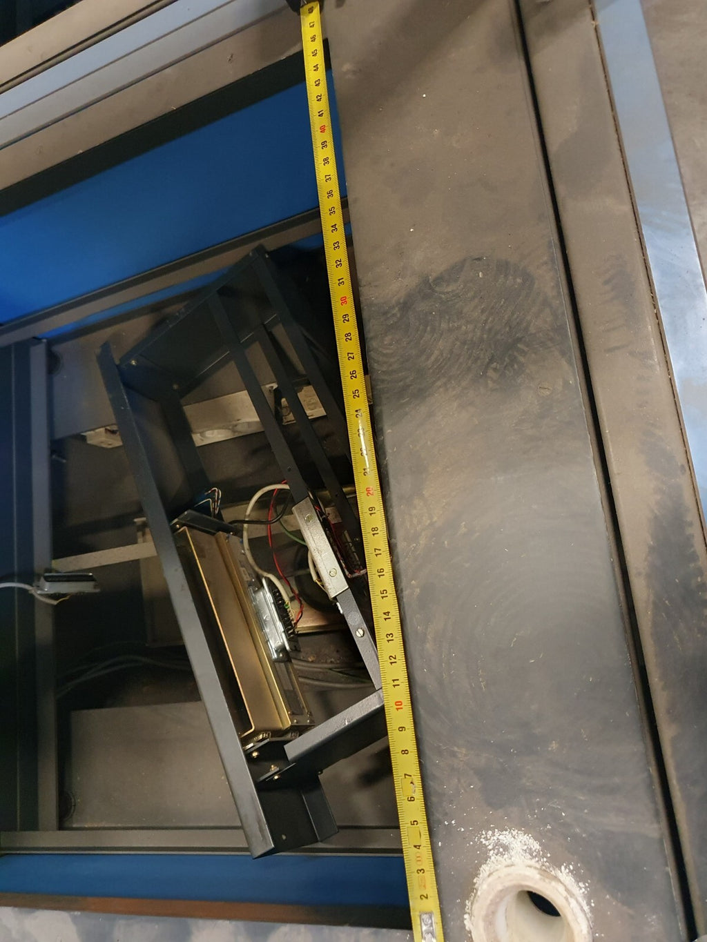 Mooi in deze blauwe kleur, en lijkt helemaal origineel. De foto's zijn gemaakt met twee exemplaren op één pallet, maar ze worden per stuk verkocht. Deze trolley heeft een binnenframe waardoor je er zowel een M5 als een M15 in kunt monteren (zonder frame).