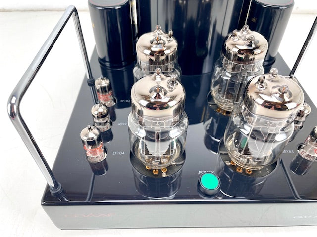 Conditie: Getest en volledig werkend. Volledig nagekeken met nieuwe buizen en gekalibreerd in ruststand. In uitstekende staat met slechts een paar kleine krasjes op de achterkant van de behuizing. Wordt geleverd met geïnstalleerde NOS-buizen en 2 extra paren 6C33c-buizen als reserve. We hebben reservebuizen gekocht omdat deze zeldzaam zijn. Mogelijk moeten de buizen na een aantal jaren vervangen worden. U kunt echter nog steeds genieten van het buizengeluid met dezelfde buizen met overeenkomende serienummers.