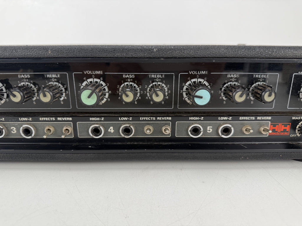 Conditie: Mooie 5-kanaals mixerversterker van HH. Is getest en werkt perfect. Dit apparaat heeft een ingebouwde veergalm, wat erg gaaf is. Ziet er cosmetisch goed uit, met slechts lichte gebruikssporen.