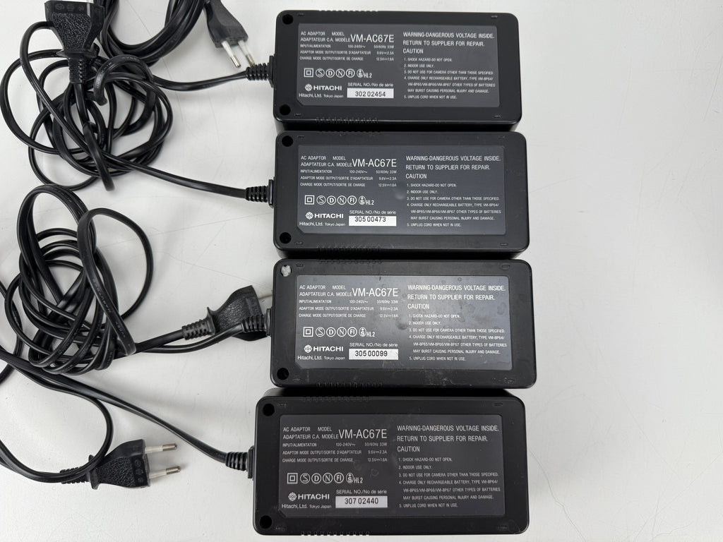 Conditie: Mooie VM-2500E camcorders van Hitachi. Deze set wordt verkocht zoals hij is, omdat we beide camcorders niet hebben getest. Inclusief 1 accu en 4 adapters. De camcorders zien er cosmetisch goed uit en lijken goed onderhouden te zijn.