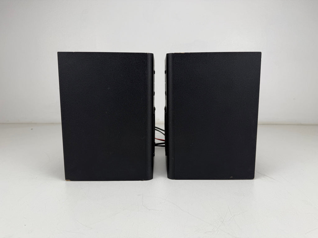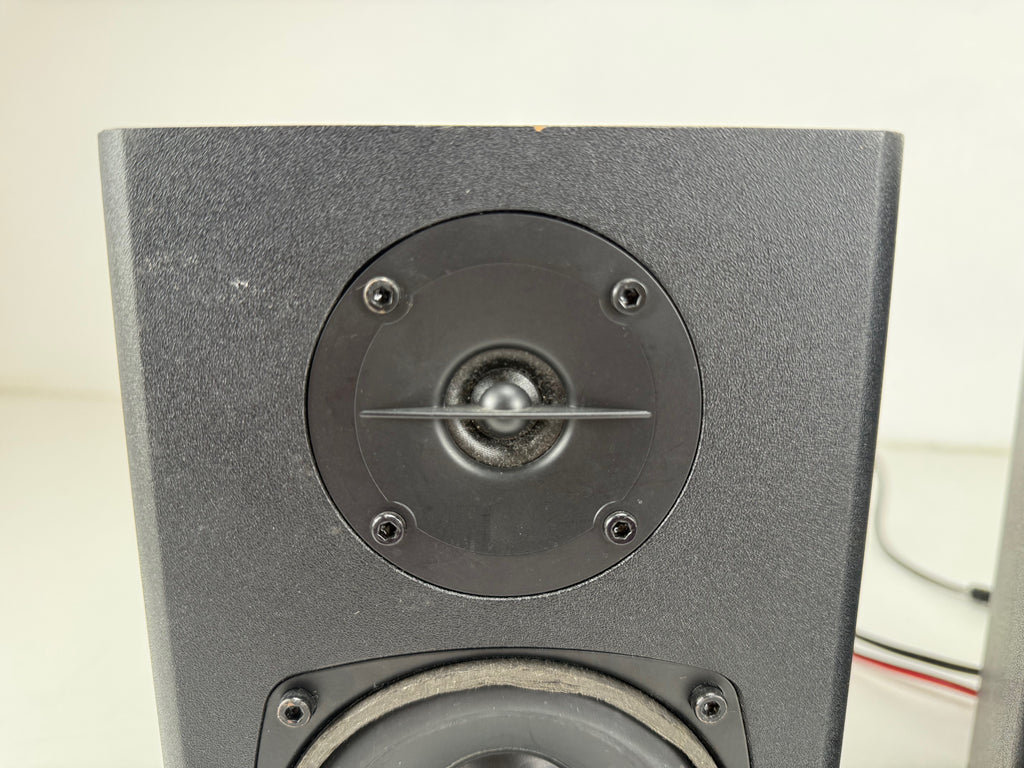 Conditie: Mooie actieve boekenplankspeakerset, werkt prima. Bij beide woofers is de dome gedeukt, daarom wordt de set in de huidige staat verkocht. De algehele cosmetische staat is goed, met lichte gebruikssporen.