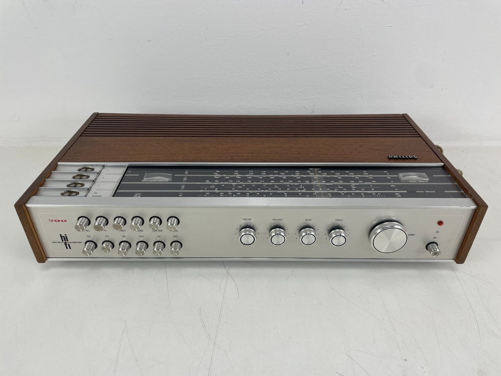 For sale: a Philips 790 (also known as 22RH790) AM/FM stereo tuner/receiver, a classic late-1960s/early-1970s solid-state stereo unit combining FM/AM radio reception and stereo amplification in a timeless vintage chassis. Designed for balanced performance with a warm analogue sound, this receiver is ideal for collectors, vintage hi-fi enthusiasts, and anyone who appreciates classic European audio engineering.
