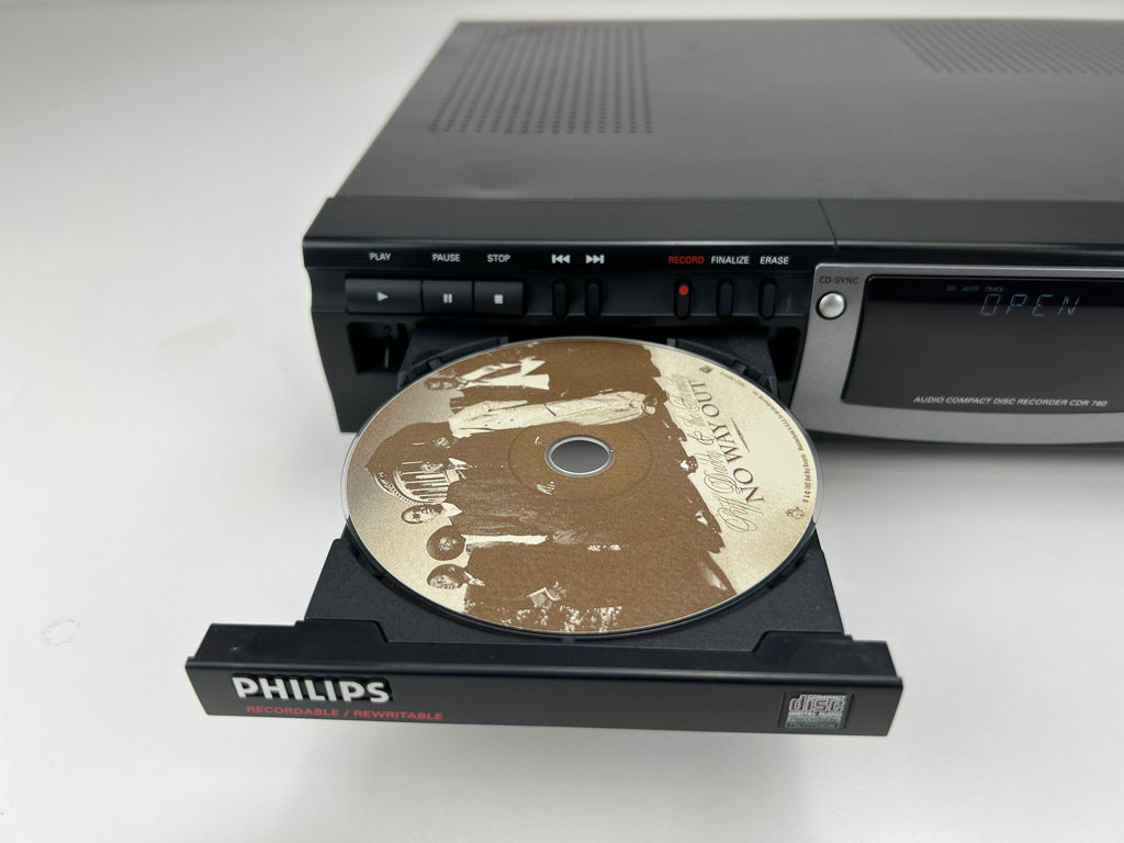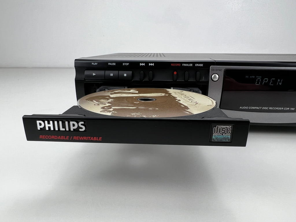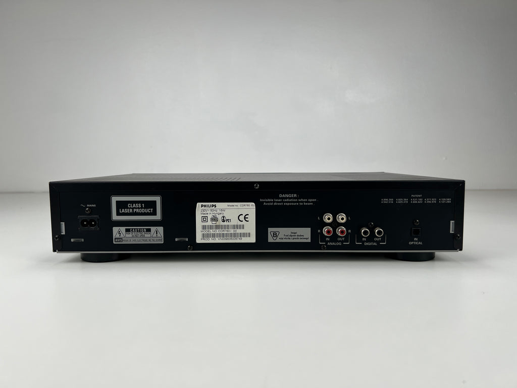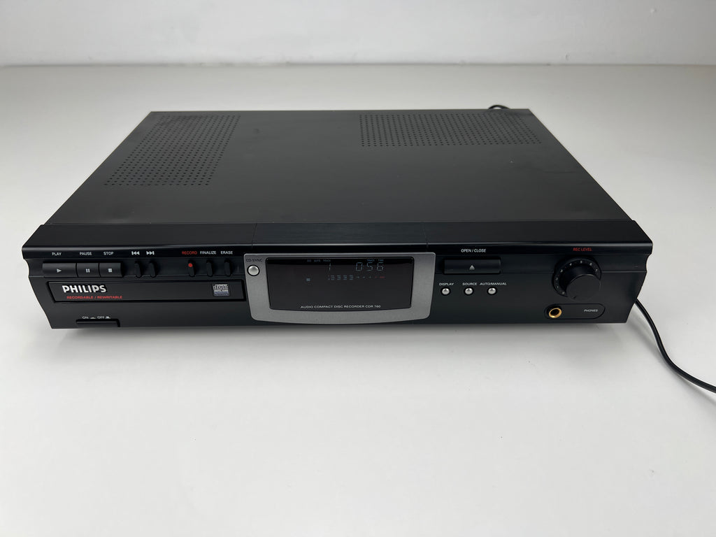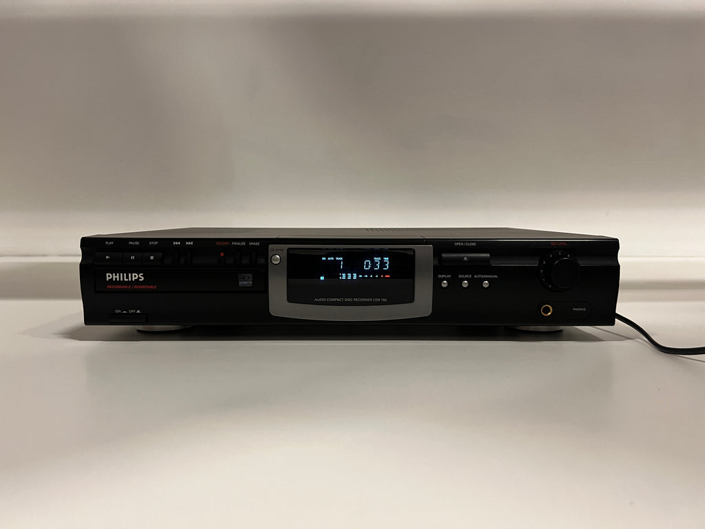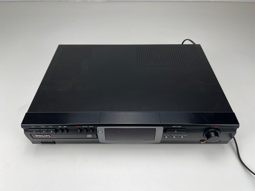 Vintage Philips cd-recorder met lichte gebruikssporen. Zonder afstandsbediening. Speelt alle cd's perfect af. Kan ook audio-cd's branden. Volledig functioneel. Kan ook gebruikt worden als D/A-converter via de TosLink optische vezel of RCA digitale ingang met zijn goede 1-bit converters. Digitale uitgang ook in cinch/coax/RCA-aansluiting.