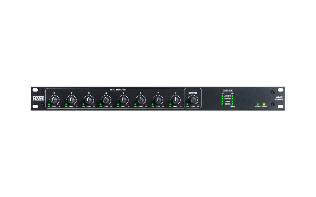 De Rane AM2 is zowel een 8-kanaals, gain-sharing automatische microfoonmixer als tegelijkertijd een Rane RAD.
