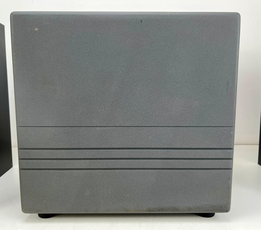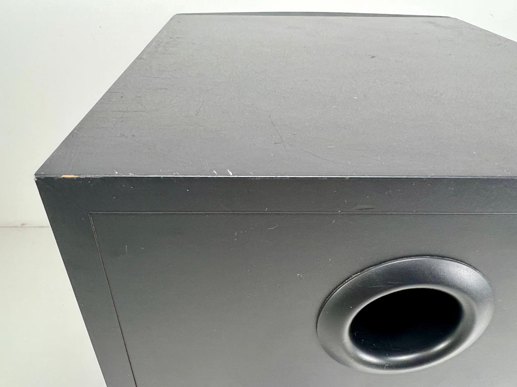 Conditie: Getest en werkend. Beide luidsprekers/subwoofer hebben lichte krasjes/beschadigingen op de behuizing en één luidspreker heeft een labelrest op de achterkant en de wooferconus ontbreekt. Houd er rekening mee dat één tweeterdome beschadigd is en vóór verzending wordt vervangen. We bestellen een nieuwe set ter vervanging van de defecte tweeter. We hebben er nog een reserve. Wordt geleverd met Tannoy Ellipse IDP afstandsbediening en een cd met softwareversie 1.64.
