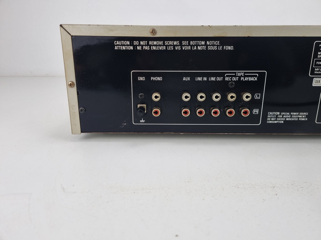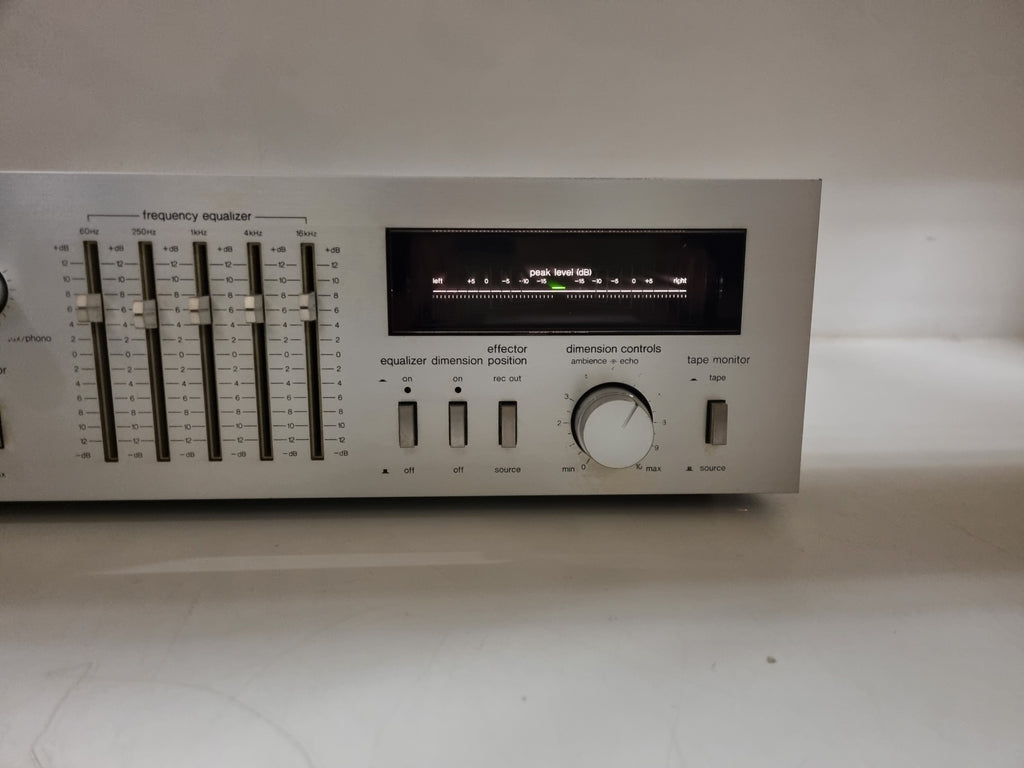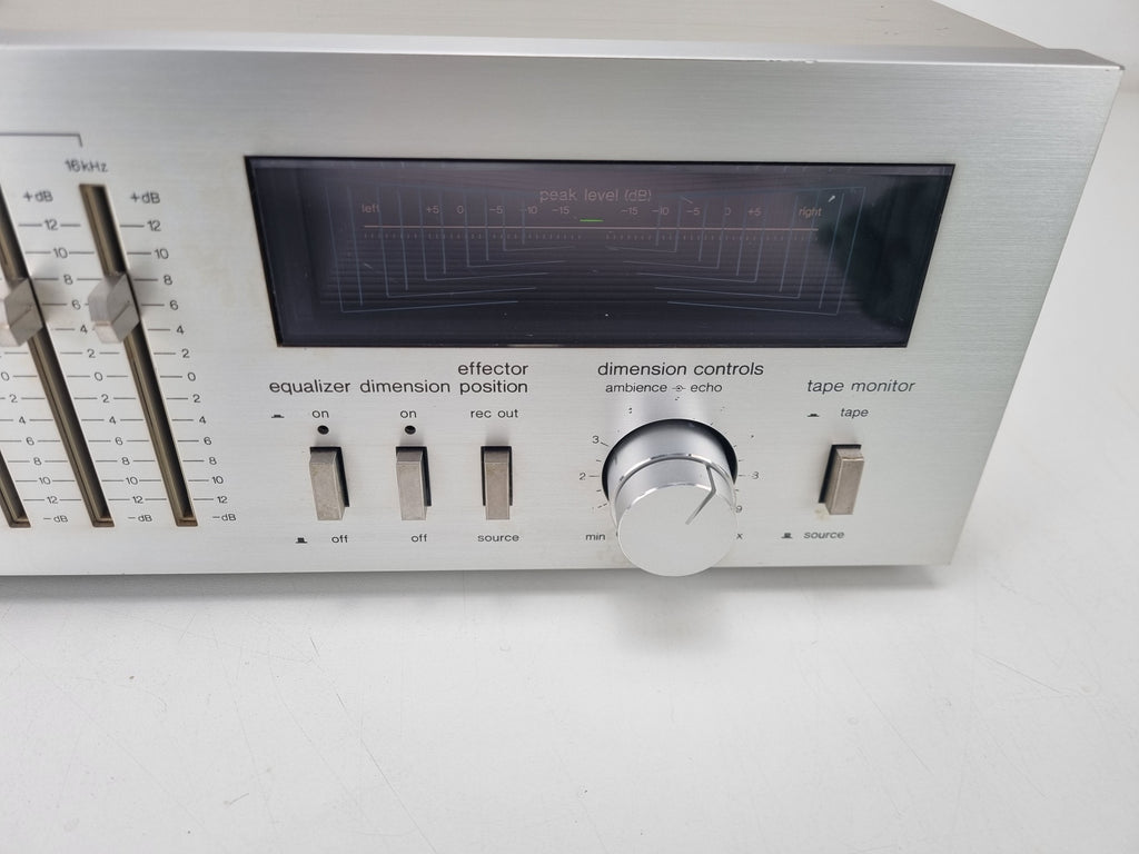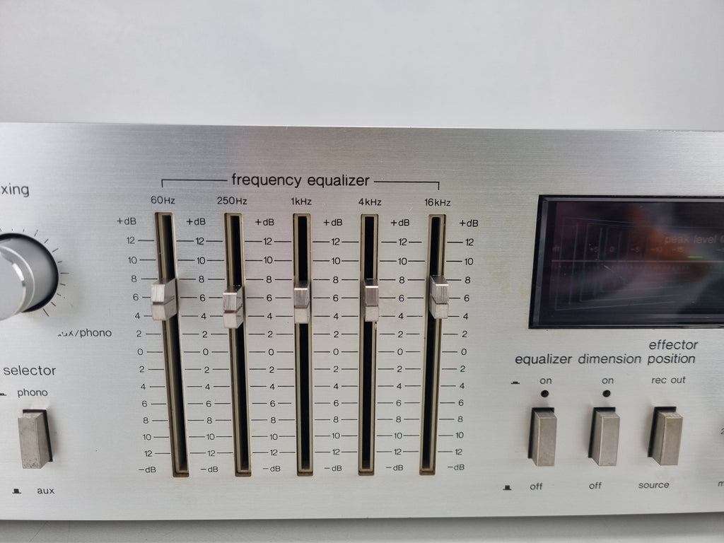 Conditie: Alle schakelaars zijn schoongemaakt en gesmeerd. Een erg fijn en leuk apparaat met meerdere ingangen en ingebouwde echo en reverb. - Wanneer de 63Hz EQ-band maximaal wordt opengezet, valt de versterker soms uit. Dit gebeurt alleen wanneer de fader helemaal open staat. Niet wanneer de fader onder de maximale gain blijft. - Inclusief adapter voor 110/220V voeding.