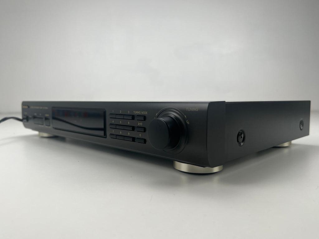 De Technics ST-GT350 is een nauwkeurig ontworpen digitale tuner die bekendstaat om zijn ontvangstnauwkeurigheid en prestaties. De geavanceerde digitale synthesizer-tuner zorgt voor een precieze afstemming over een breed frequentiebereik. Met diverse afstemmodi, waaronder automatisch en handmatig afstemmen, kunnen gebruikers de ontvangst optimaliseren naar eigen voorkeur. De tuner heeft een intuïtieve interface met een digitaal display dat duidelijke informatie geeft over de afgestemde frequentie en signaalsterkte. Dankzij technologie die interferentie vermindert en de signaalhelderheid verbetert, levert de tuner een hoogwaardige audio-uitvoer. Het strakke ontwerp, de technische mogelijkheden en de focus op betrouwbare ontvangst maken de ST-GT350 een gewilde keuze voor audiofielen die op zoek zijn naar een topklasse tuner.