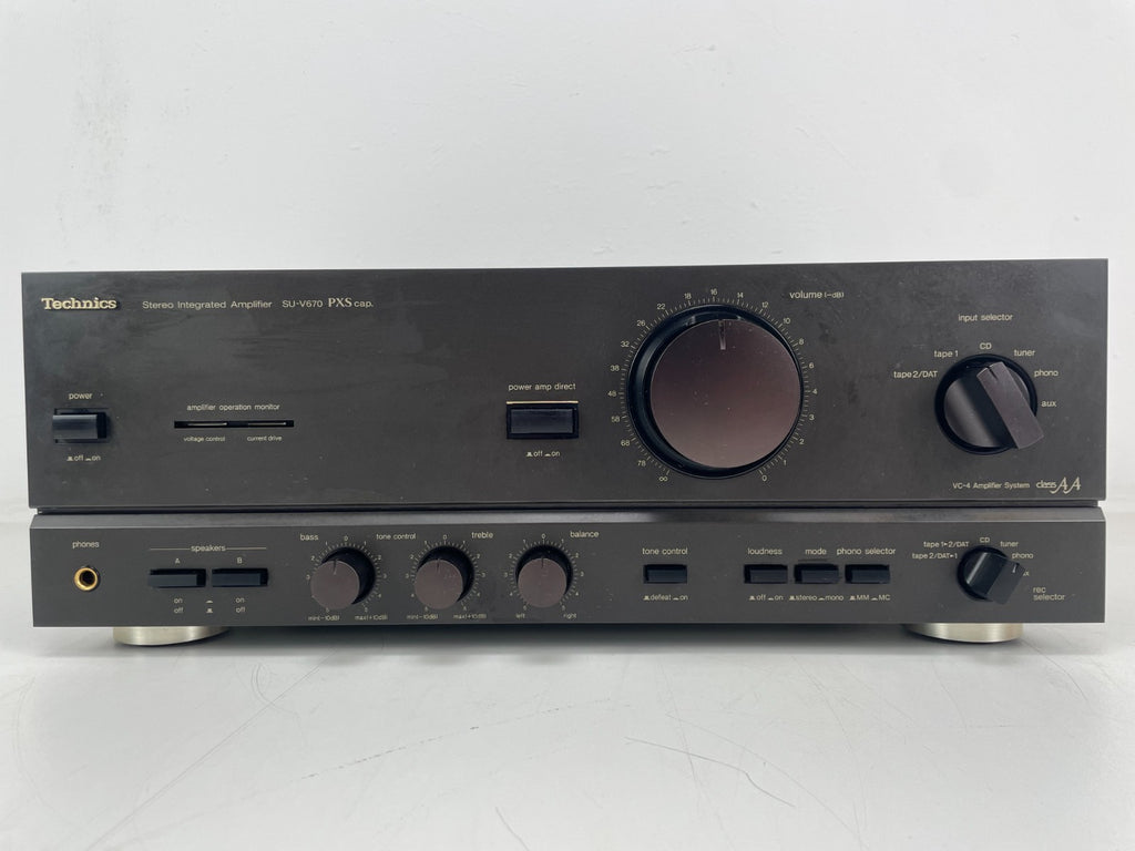 Te koop: een Technics SU-V670 geïntegreerde stereo-versterker, onderdeel van Technics' befaamde V-serie. De SU-V670 staat bekend om zijn heldere, krachtige geluid, solide constructie en betrouwbare klasse AA-versterking en is een uitstekende keuze voor zowel vintage als moderne hifi-systemen.