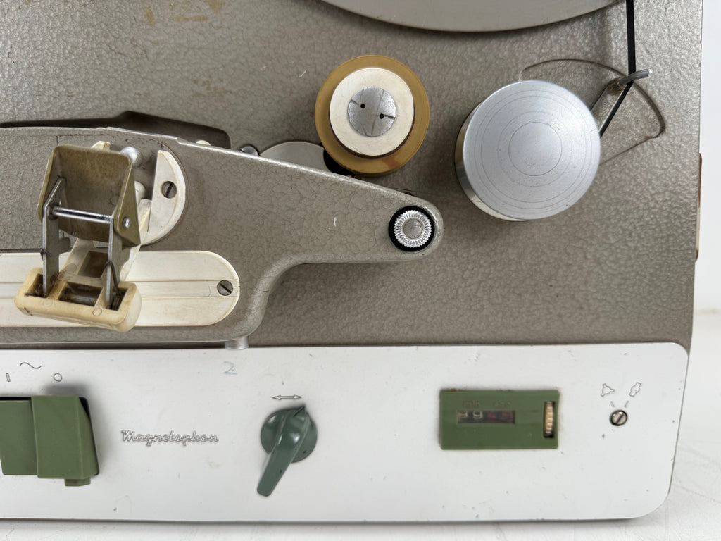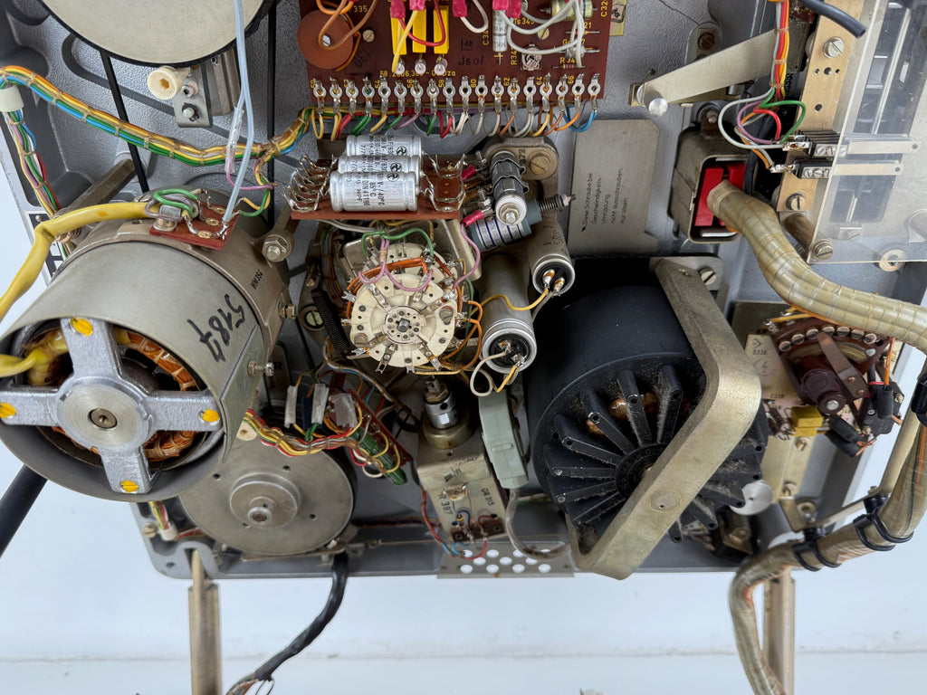 Conditie: Epic recorder van Telefunken. Dit apparaat is gereviseerd, de koppen (WC-05 AC-05) zijn in uitstekende staat en het wordt geleverd met V396/397 voorversterkers. De in- en uitgangen zijn aangepast naar DIN (Small Tuchel), het bedradingsschema is bijgevoegd. Ook worden er tapeplateaus meegeleverd. Het apparaat is cosmetisch in goede staat met lichte gebruikssporen.