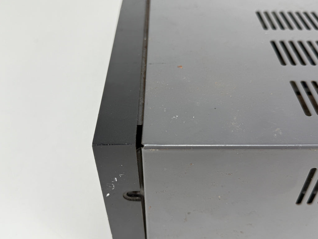 Conditie: Goede werkende staat, het is getest en lijkt te werken. We hebben het niet met luidsprekers getest, omdat er stroom op de lijn lijkt te staan. Je hoort het ingangssignaal en ziet de VU-meter bewegen. De cosmetische staat is minder goed; de voetjes en een schroef aan de linkerkant ontbreken, dus het wordt verkocht zoals het is.