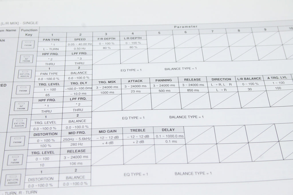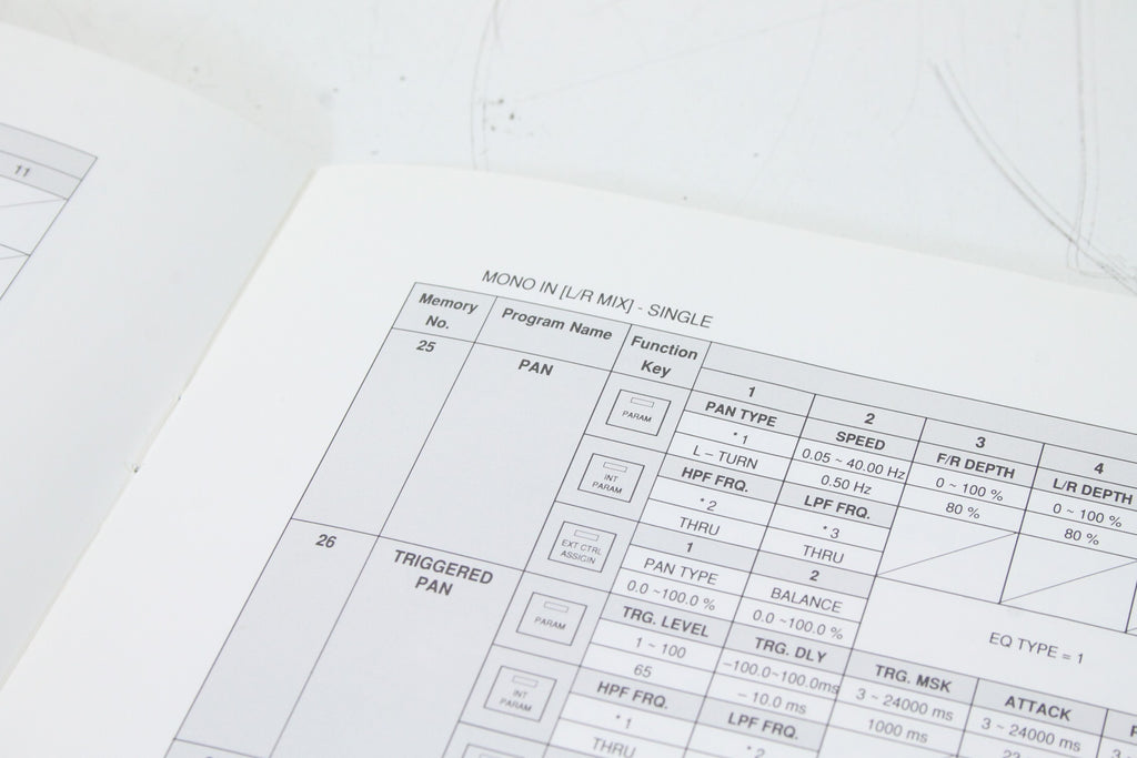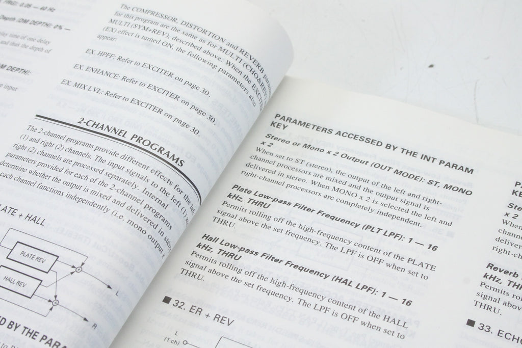 Gebruikershandleiding Yamaha SPX1000, programmatabel en modusboekje.