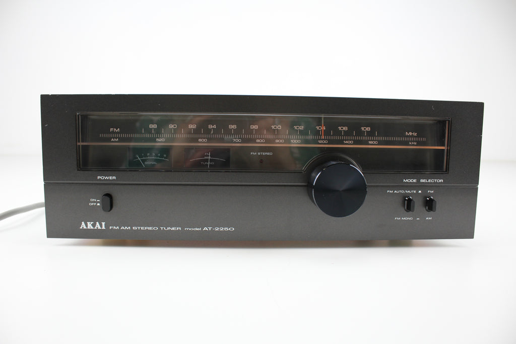 For sale: The Akai AT-2250 is a vintage AM/FM stereo tuner from the late 1970s, known for its high-quality performance and sleek design.