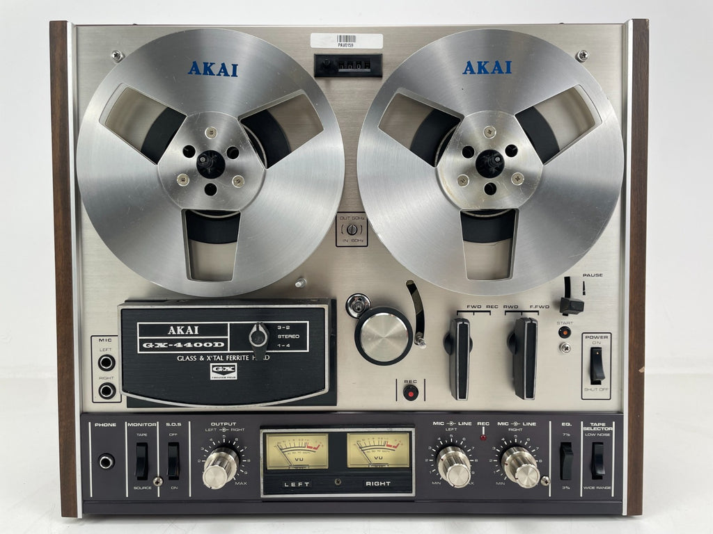 For sale: an Akai GX-4400D Reel-to-Reel Tape Recorder, a classic 1970s Akai machine featuring GX glass & crystal ferrite heads known for durability, long life, and excellent sound quality. This is a solid 3-motor, 3-head deck suitable for music playback, recording, and vintage tape archiving.