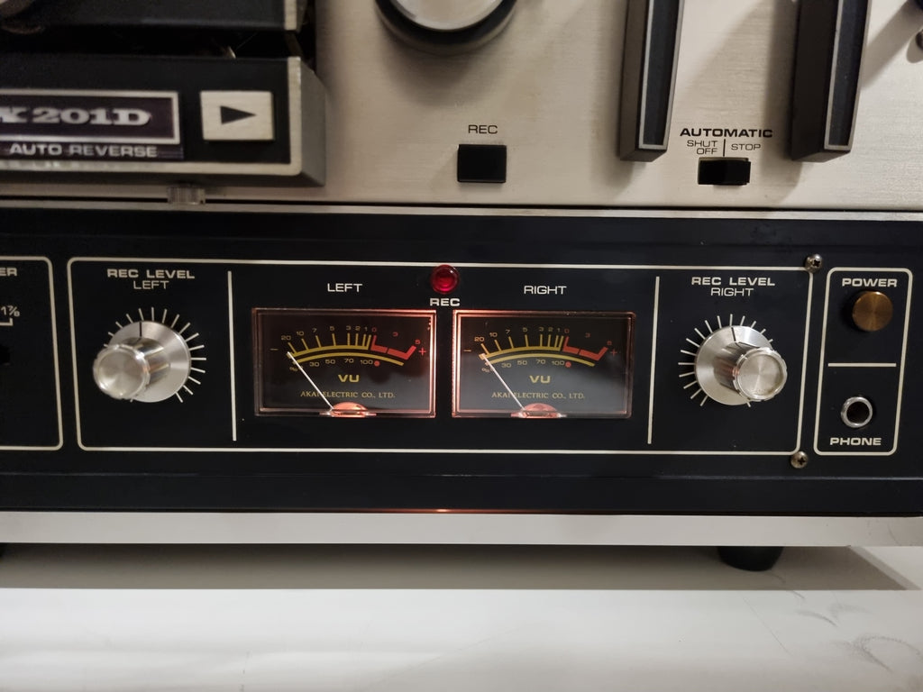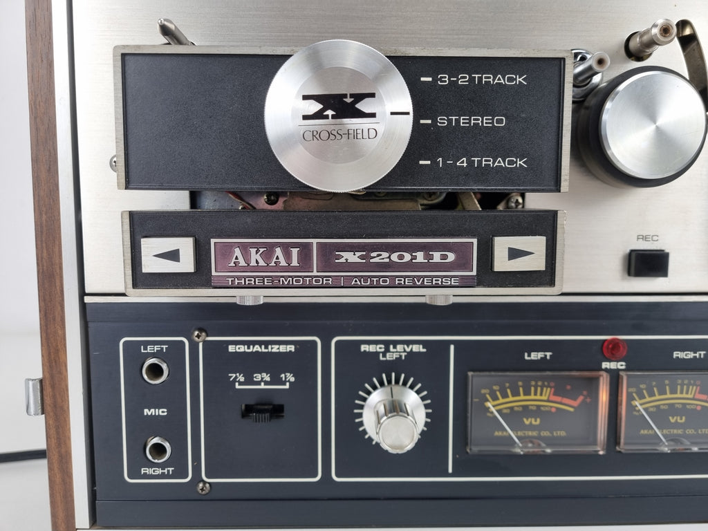 For sale: AKAI X-201D - 1/4'' reel tot reel recorder - 4 track 2 channel - With lid