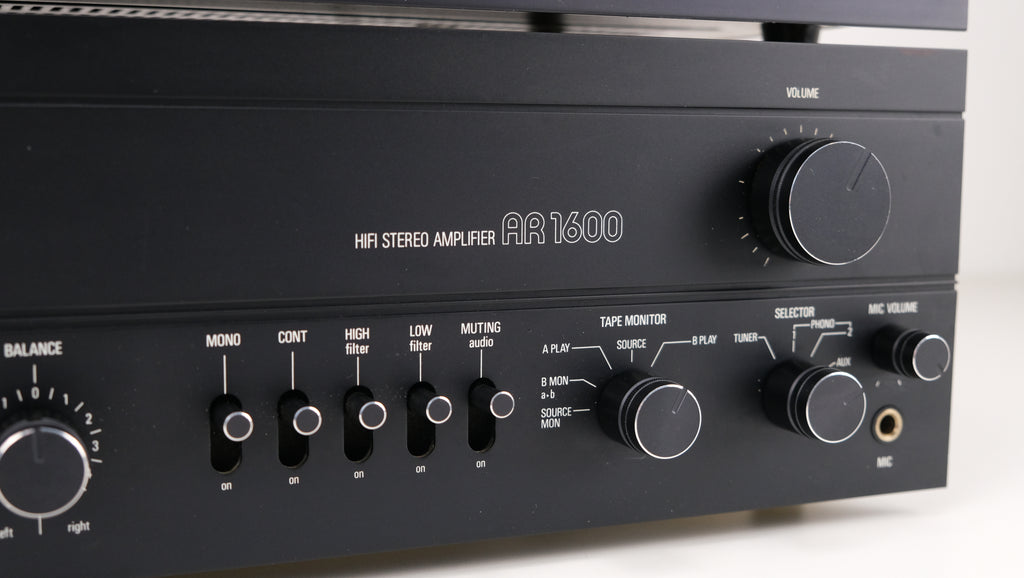 The vintage Aristona AR 2000stereo tuner stands out with its rare variable volume control feature, adding a unique dimension to its functionality. This allows users to fine-tune the audio output according to their preferences directly from the tuner itself, enhancing convenience and customization. Alongside its sensitive tuner for clear reception, this feature elevates the AR-1600's usability and versatility. With its durable construction and intuitive interface, it remains a sought-after choice for audiophiles seeking vintage excellence..
