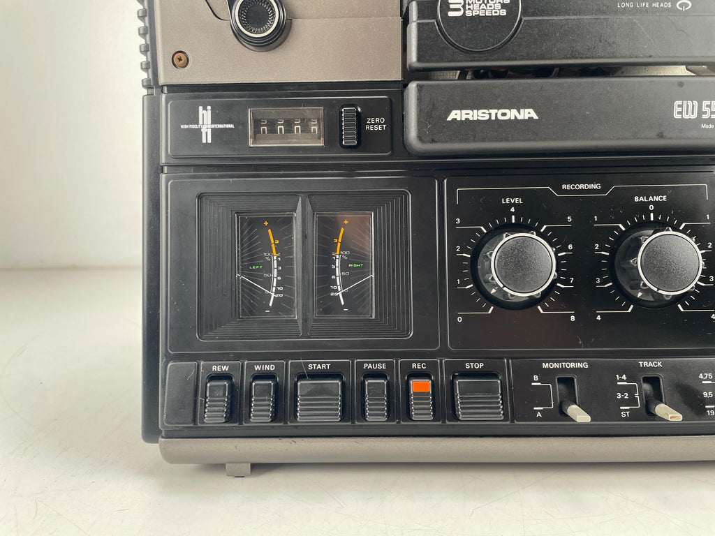 For sale: is a vintage Aristona EW5504 reel-to-reel tape deck, a rebadged version of the Philips N4504, renowned for its robust build and high-quality audio performance. This unit has been professionally serviced, featuring new snares for optimal tape tension and cleaned potentiometers ensuring smooth operation.