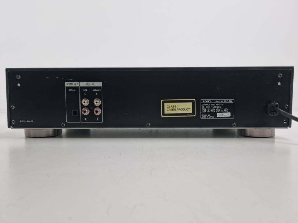 Condition:New Laser - The Sony CDP-790 is a classic CD player from the early 1990s, known for its solid construction and reliable performance. Often praised for its clear sound reproduction, this model features Sony's renowned "High Density Linear Converter" and offers various playback functions, including program playback, repeat playback, and a headphone output with volume control.