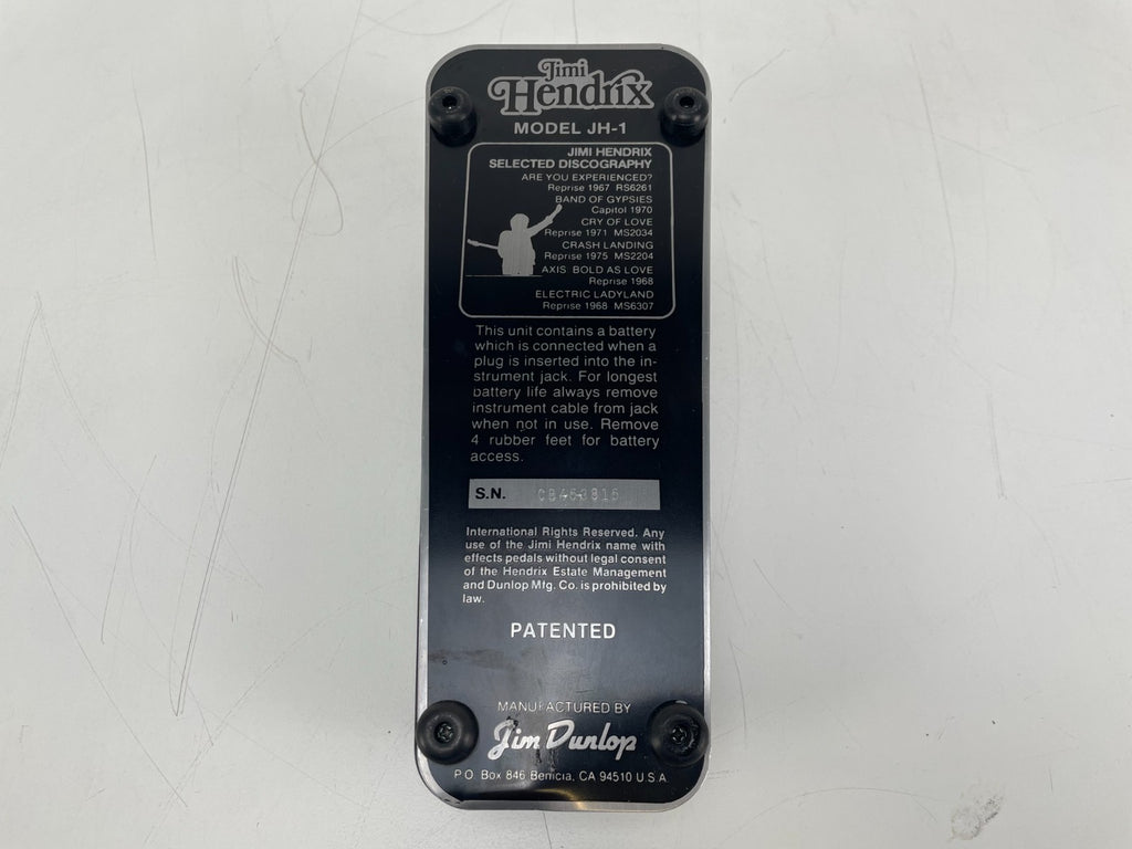 For sale: a Jim Dunlop Jimi Hendrix JH-1 Wah Pedal, designed to recreate the classic wah-wah tones used by Jimi Hendrix in the late 1960s. This pedal delivers that unmistakable sweeping, vocal-like expression heard on countless legendary recordings. The JH-1 is known for its smooth response, musical sweep, and strong midrange character.