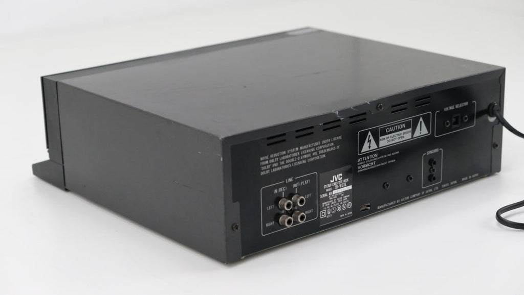 With the Dolby-B system, the TD-W33 effectively minimizes tape hiss on recordings, reducing it by up to 10 dB at higher frequencies. For seamless integration with other audio components, playback connection is facilitated by an RCA cable, while source recording is achieved using another RCA cable. The JVC TD-W33 thus delivers a comprehensive cassette deck experience with user-friendly features and noise reduction capabilities.