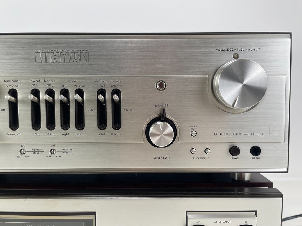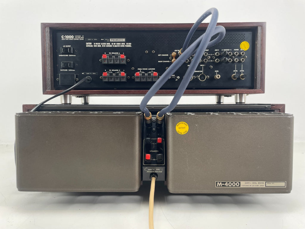 This Luxman C-1000 / M-4000 set is in exceptionally well-preserved, mint condition. Both units show only the slightest signs of age, with no notable scratches, dents, or discoloration. The front panels are clean, the lettering is fully intact, and all controls move smoothly and precisely.