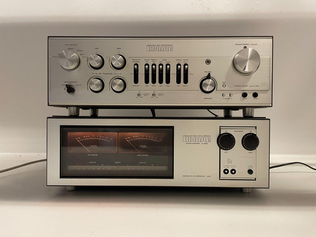 For sale: a vintage Luxman C-1000 preamplifier paired with the legendary Luxman M-4000 power amplifier.
