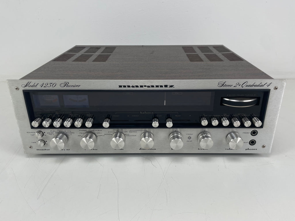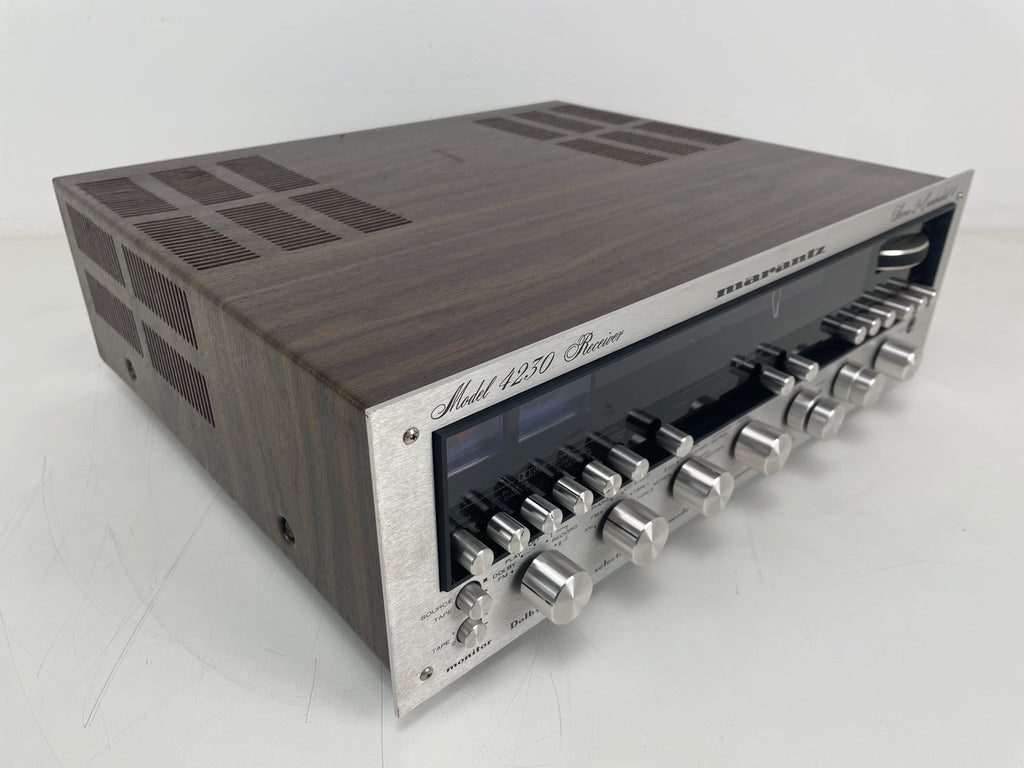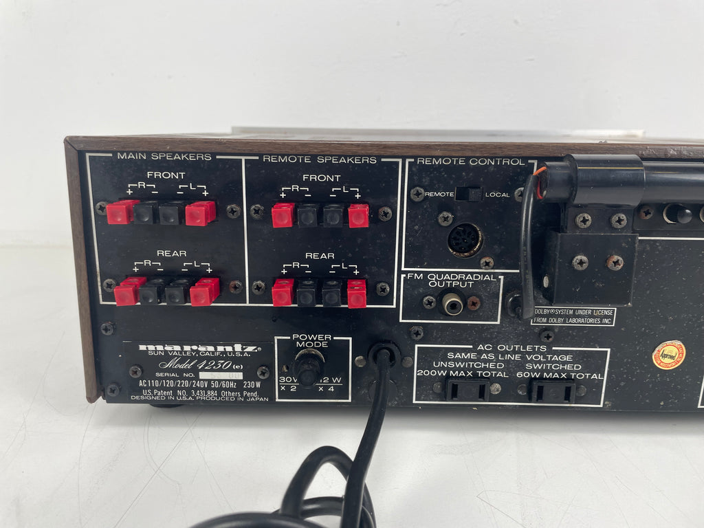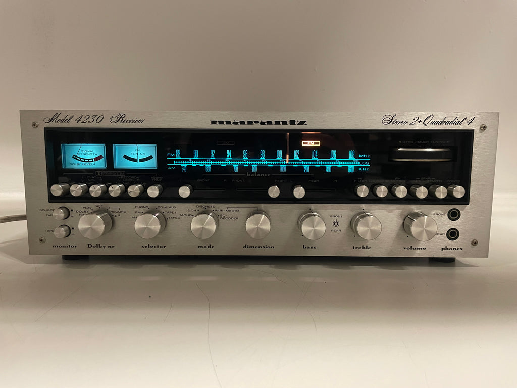 Marantz 4230E Stereo / Quadradial 4 Receiver, a classic vintage receiver from Marantz’s highly regarded quadraphonic era. This model supports both traditional 2-channel stereo and 4-channel quadraphonic playback, making it a unique and versatile centerpiece for vintage hi-fi systems.