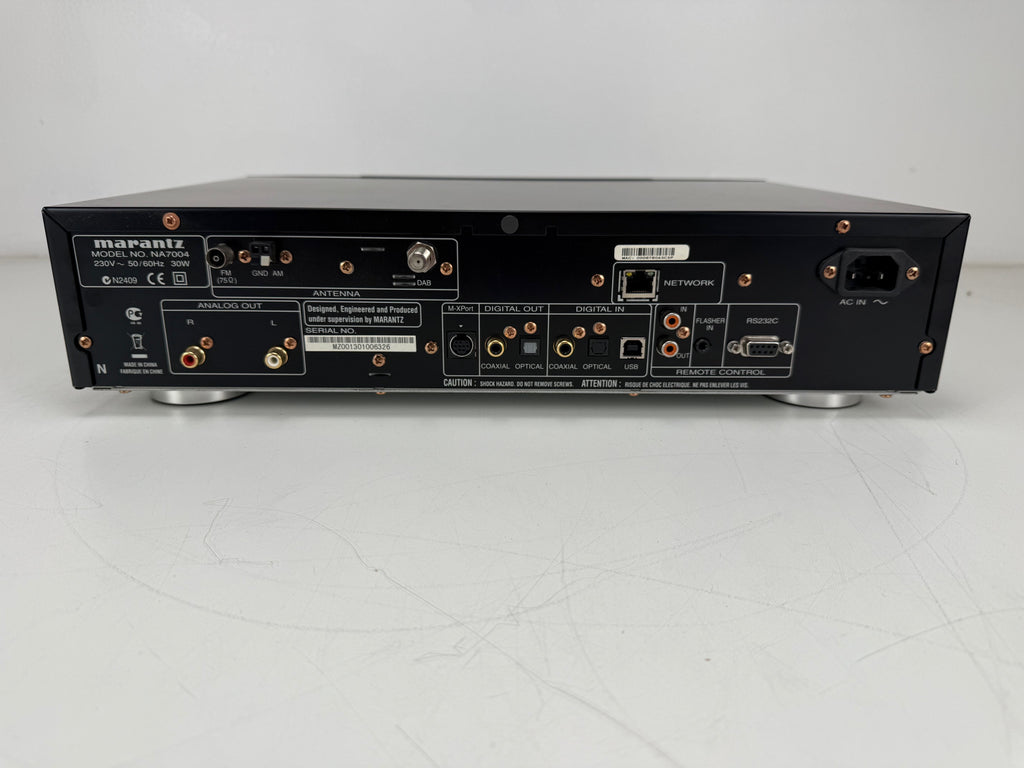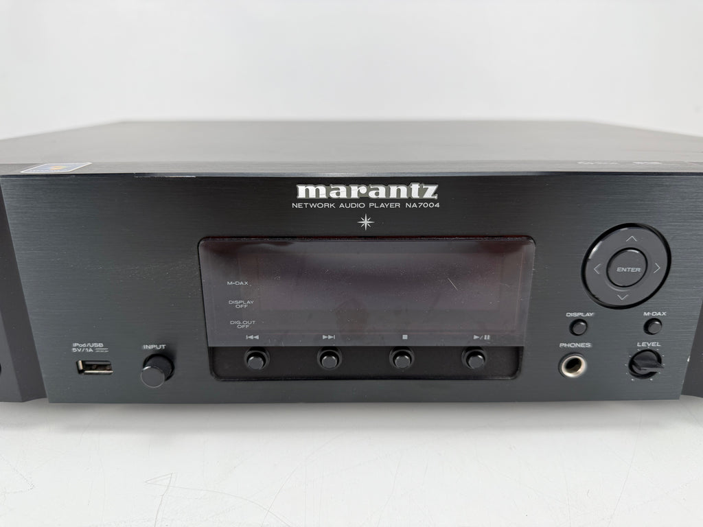 Condition: Nice NA7004 Audio Player from Marantz. Seems to work fine it's not tested with speakers so it's sold as is. cosmetics are nice it has a nasty scratch on the top cover but over all it has minor usage marks.