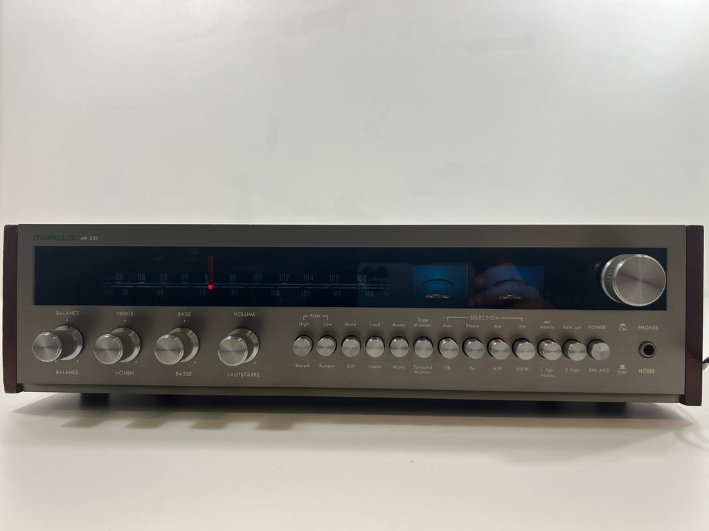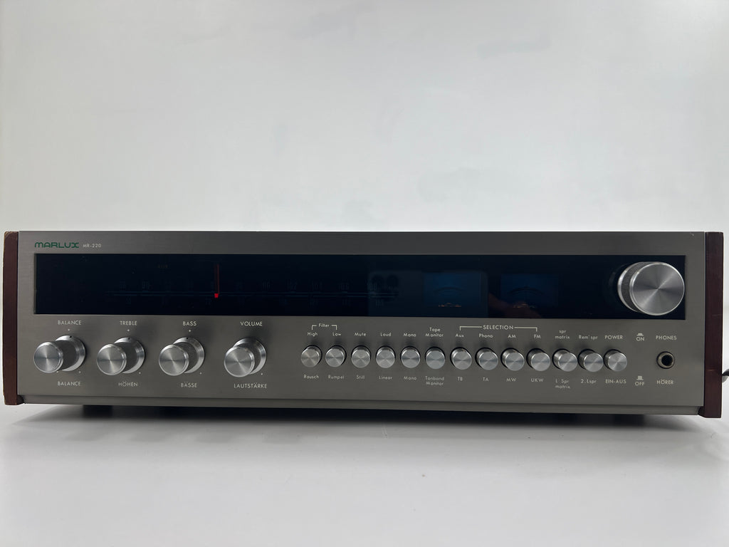 The Marlux MR-220 stands as a commendable mid-tier audio receiver, offering a solid blend of performance and value. Delivering 30 watts per channel, it strikes a balance between power and affordability. Despite its mid-tier classification, the MR-220 distinguishes itself with a reliable build and respectable sound quality. Its circuitry, though not at the premium level, incorporates quality components that contribute to a pleasing audio experience. The receiver maintains an appealing design with user-friendly controls, making it a reliable and cost-effective choice for enthusiasts seeking a solid mid-range audio solution.