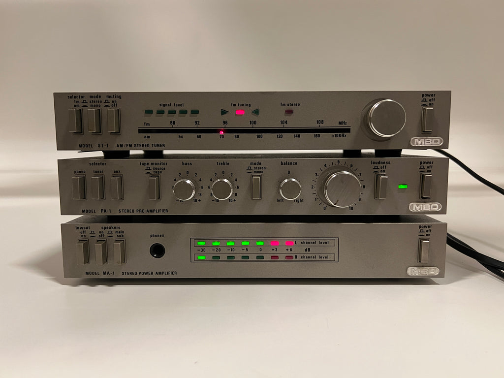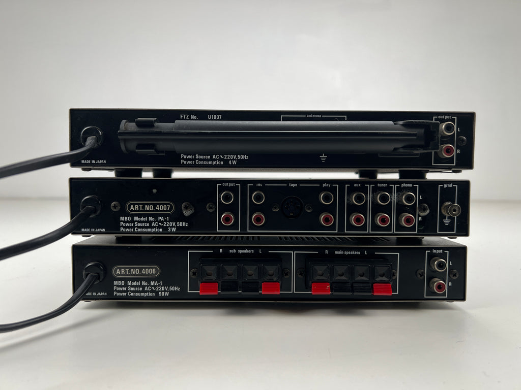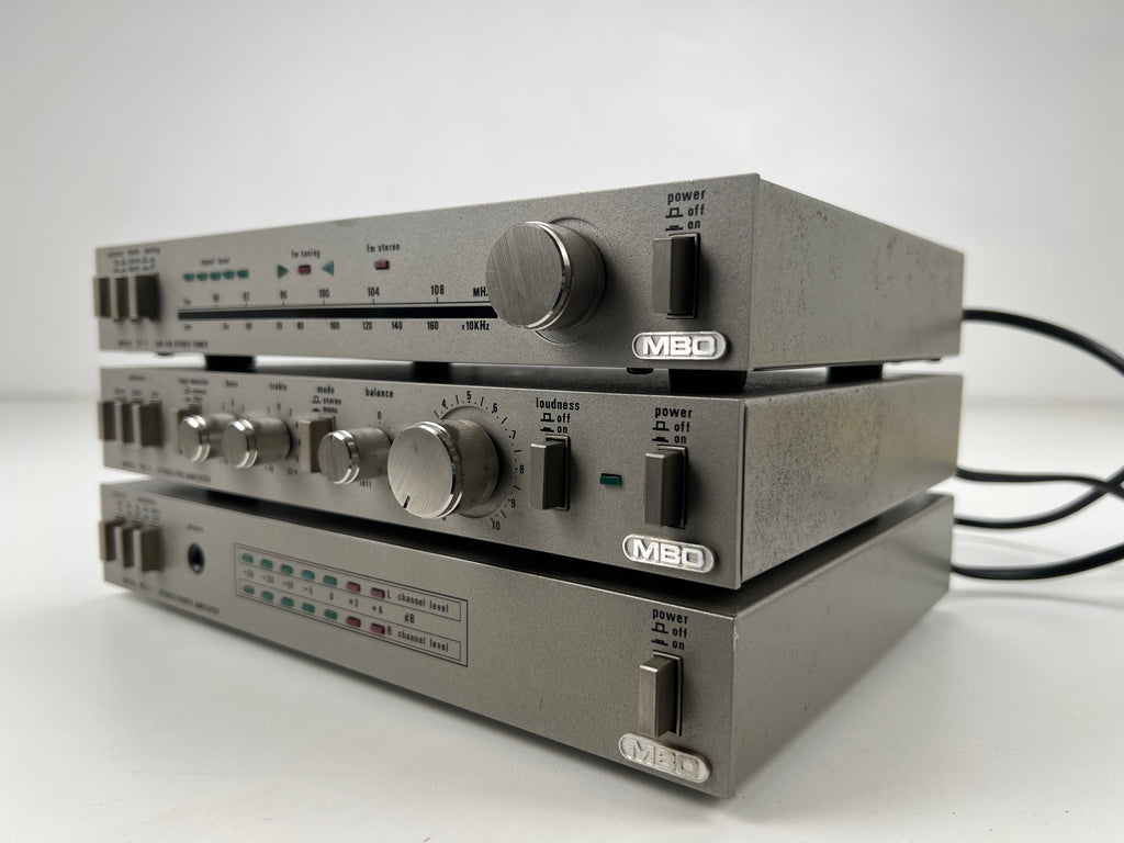 Very unique mini set from MBO featuring a pre amplifier, power amplifier and tuner. All in very compact design. They still sound very good despite how small the set is.