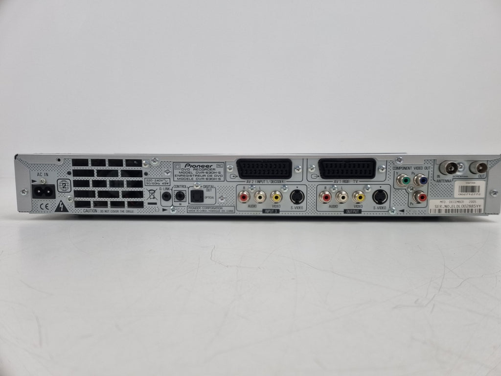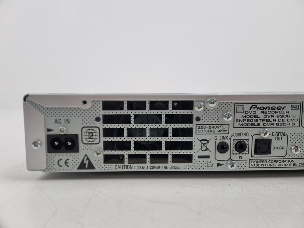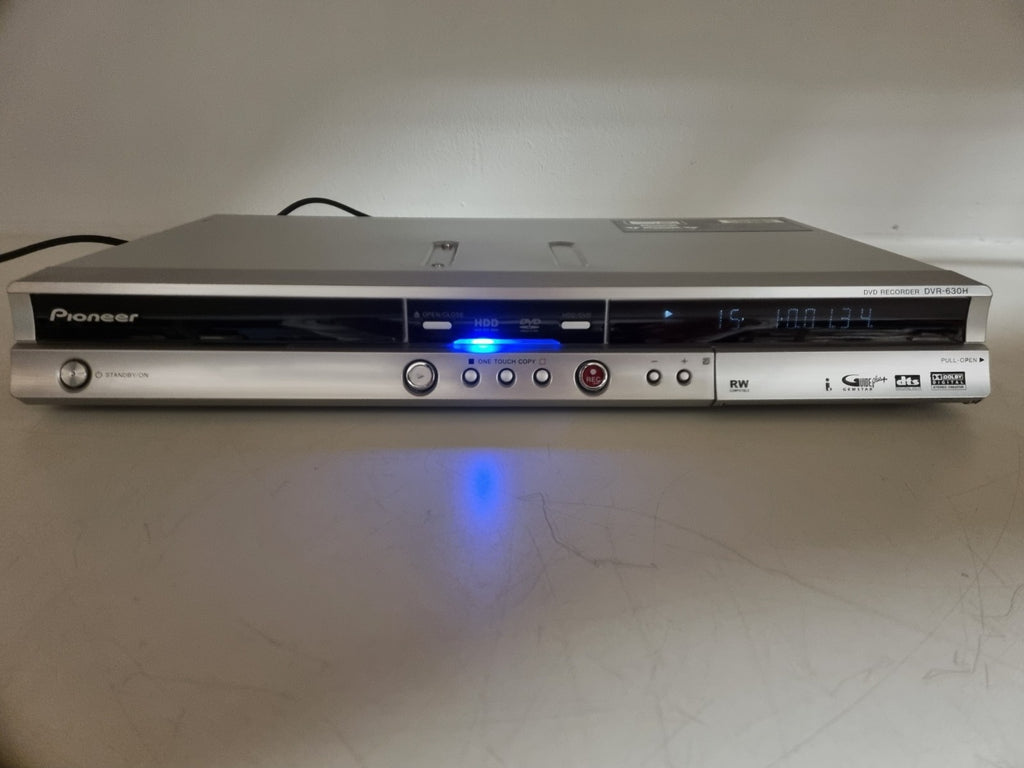 Condition:Nice condition. With the instruction booklet - Remote controle.The Pioneer DVR-630H-S is a DVD recorder with a 160GB hard drive, capable of recording up to 13 hours on a single-layer DVD-R/RW and 24 hours on a dual-layer disc. It features a new MPEG encoder for better detail, USB ports for connecting cameras, memory keys, and keyboards, and a PictBridge-compatible USB port on the rear. The recorder also has i.Link and Progressive Scan capabilities.