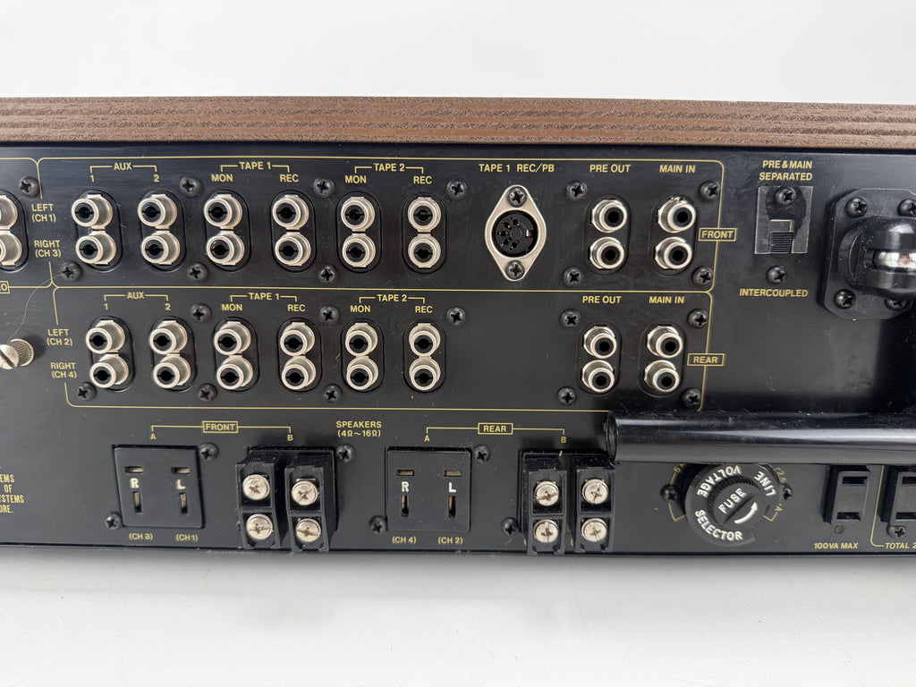 Condition: Very nice epic 4-channel receiver from Pioneer. This piece has been fully recapped, cleaned all the pots and replaced the scale lights, this epic piece works and sounds really good. Cosmetics are also very nice it has minor usage marks.