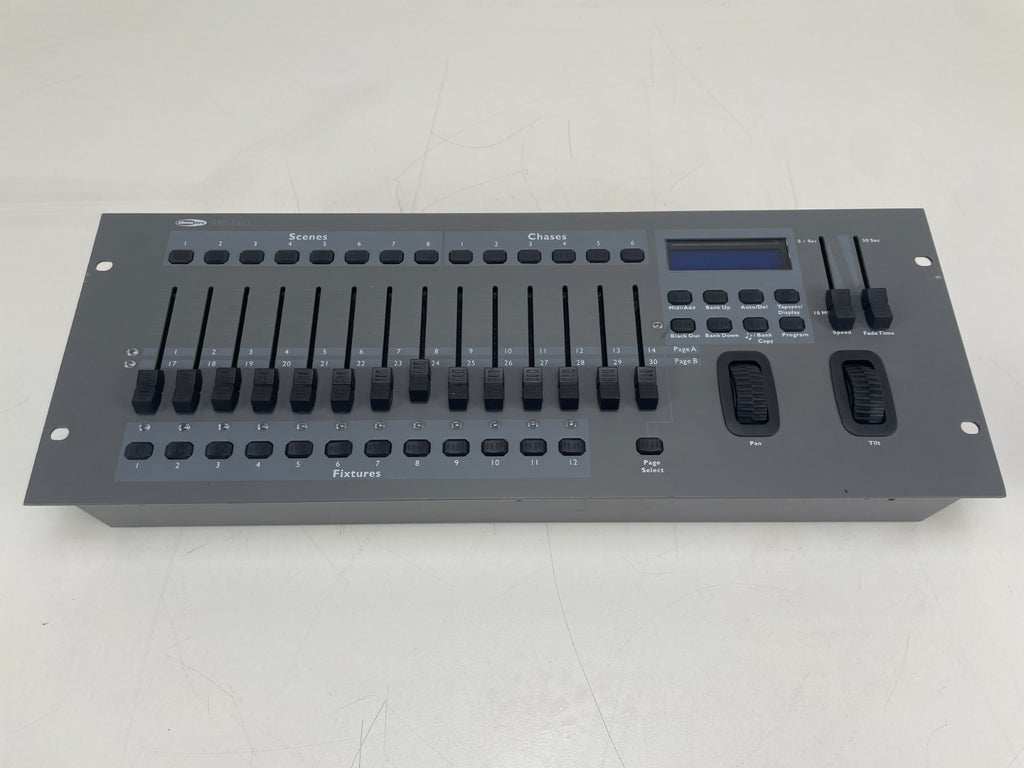 For sale: The Showtec SM16/2 is a 16-channel DMX lighting controller, designed for professional stage, theatre, and event lighting setups. This vintage version offers intuitive programming, manual control, and solid build quality, typical of Showtec's early DMX desks.
