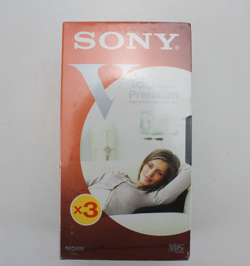 3 pack Sony E3-180VH- Premium 180 Minutes VHS Videocassette,