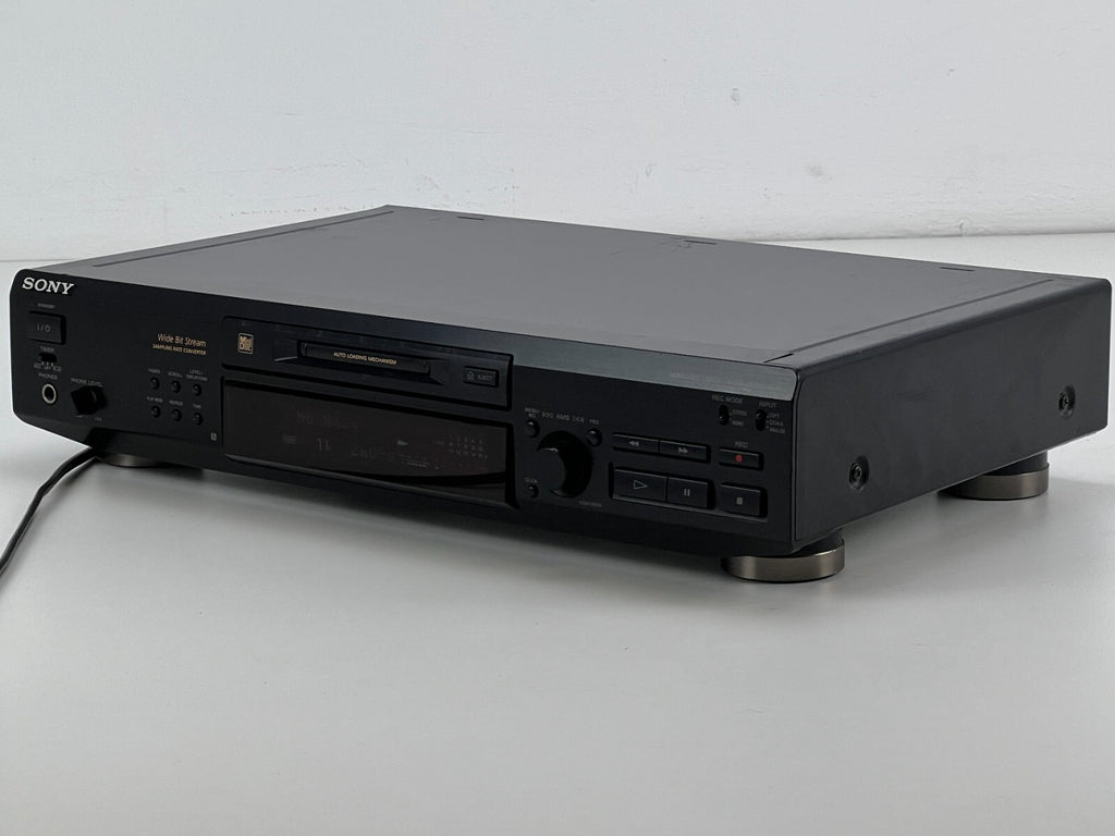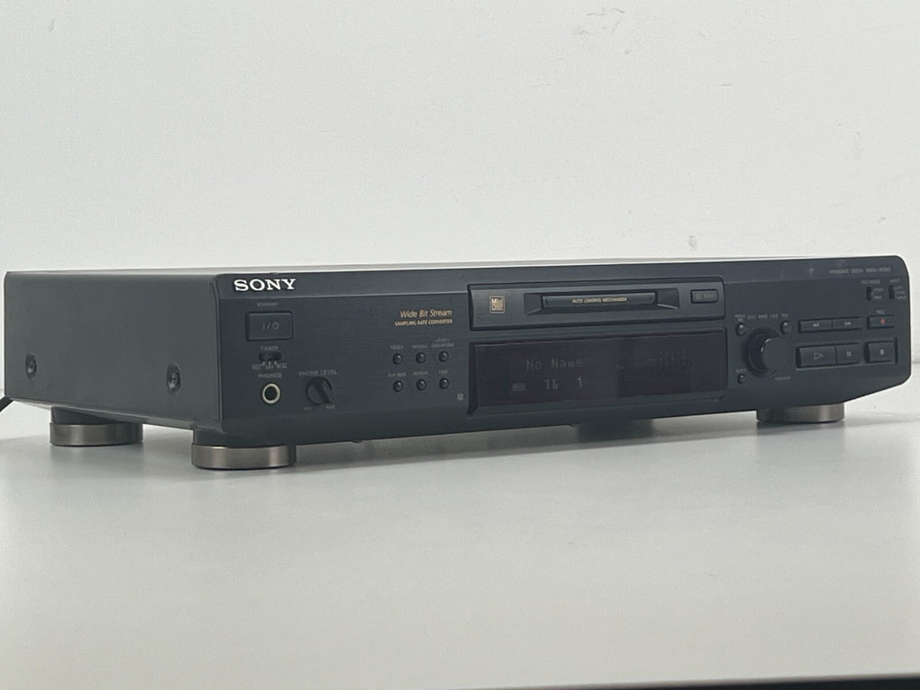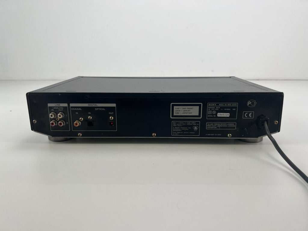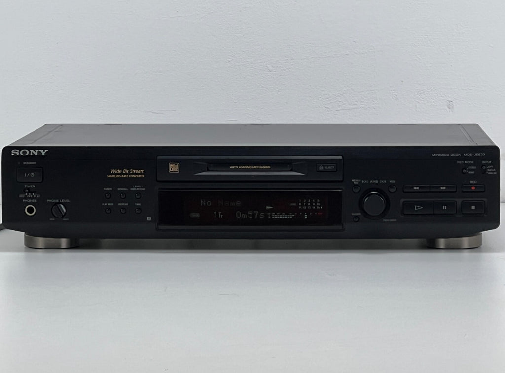 The vintage Sony MDS-JE520 Stereo Mini Disc Recorder from 1998 features a robust 2-channel stereo track system and utilizes the KMS-260A/J1N optical pickup for precise audio reproduction. With a sampling frequency of 44.1kHz and a wide frequency response ranging from 5Hz to 20kHz, it ensures faithful audio reproduction. The recorder boasts an impressive signal-to-noise ratio of 96dB, offering clear and detailed sound quality. Its versatile connectivity options include both analogue inputs and outputs, as well as digital inputs and outputs via coaxial and optical connections, making it adaptable to various audio setups. Additionally, it comes with the RM-D15M remote control for convenient operation, solidifying its position as a user-friendly and high-performance mini disc recorder in the late 1990s audio landscape.