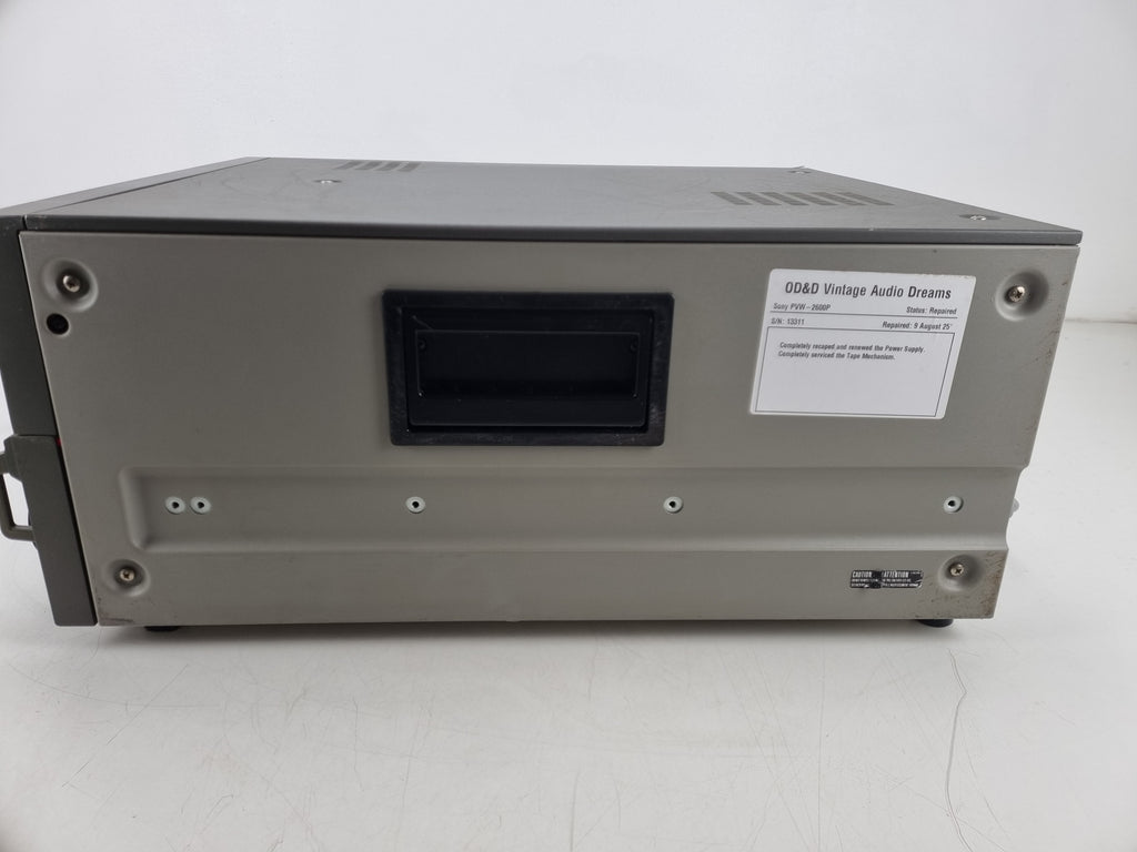 Completely serviced the tape mechanism.The Sony PVW-2600P is a discontinued PAL Betacam SP player known for its high-quality component video and audio outputs, high-speed picture search, and compatibility with S-size and L-size cassettes.Comes without the vhs tape!